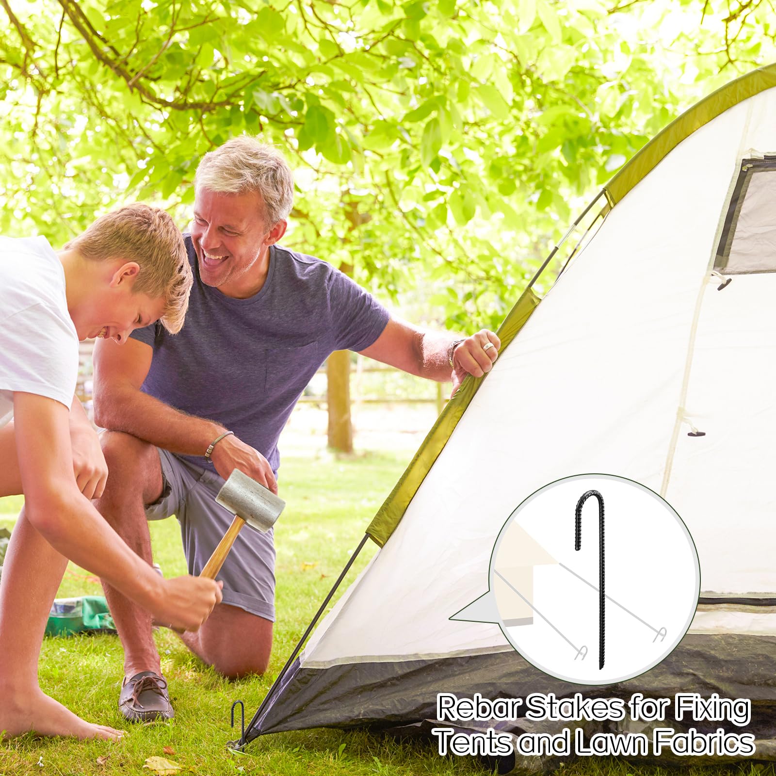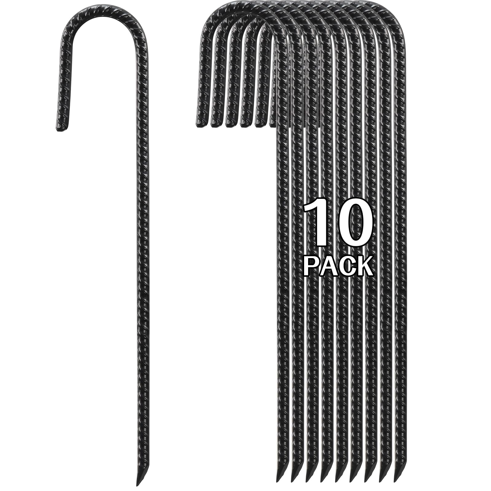 16 Inch Rebar Stakes Heavy Duty, 10 Pack J-Shaped Tent Stakes, Ground Anchor Stakes for Landscaping Plants Fabric Tube Fence, Black