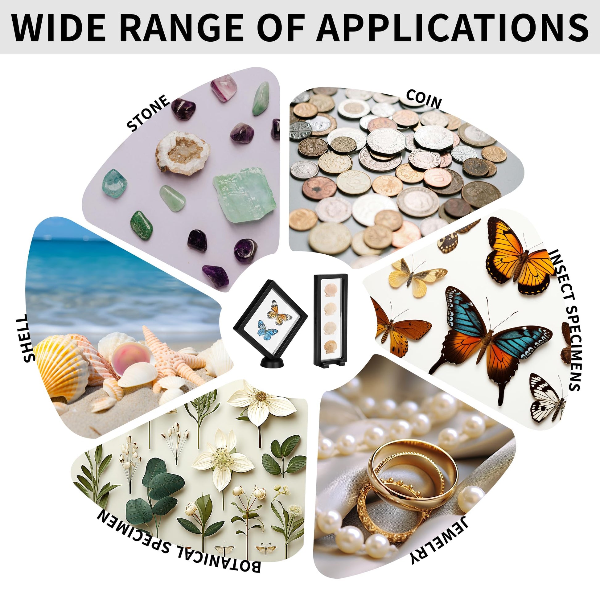 - 【You Must be a Little Collector】Put whatever you want to display in. Let the world see your treasures. Bugs, strange rocks, plant leaves, shells, ring, earrings, necklace, jewelry, medals, coins, antique, etc. With the help of this black floating display case, let them be more than just in your mind, let them be with you in reality.