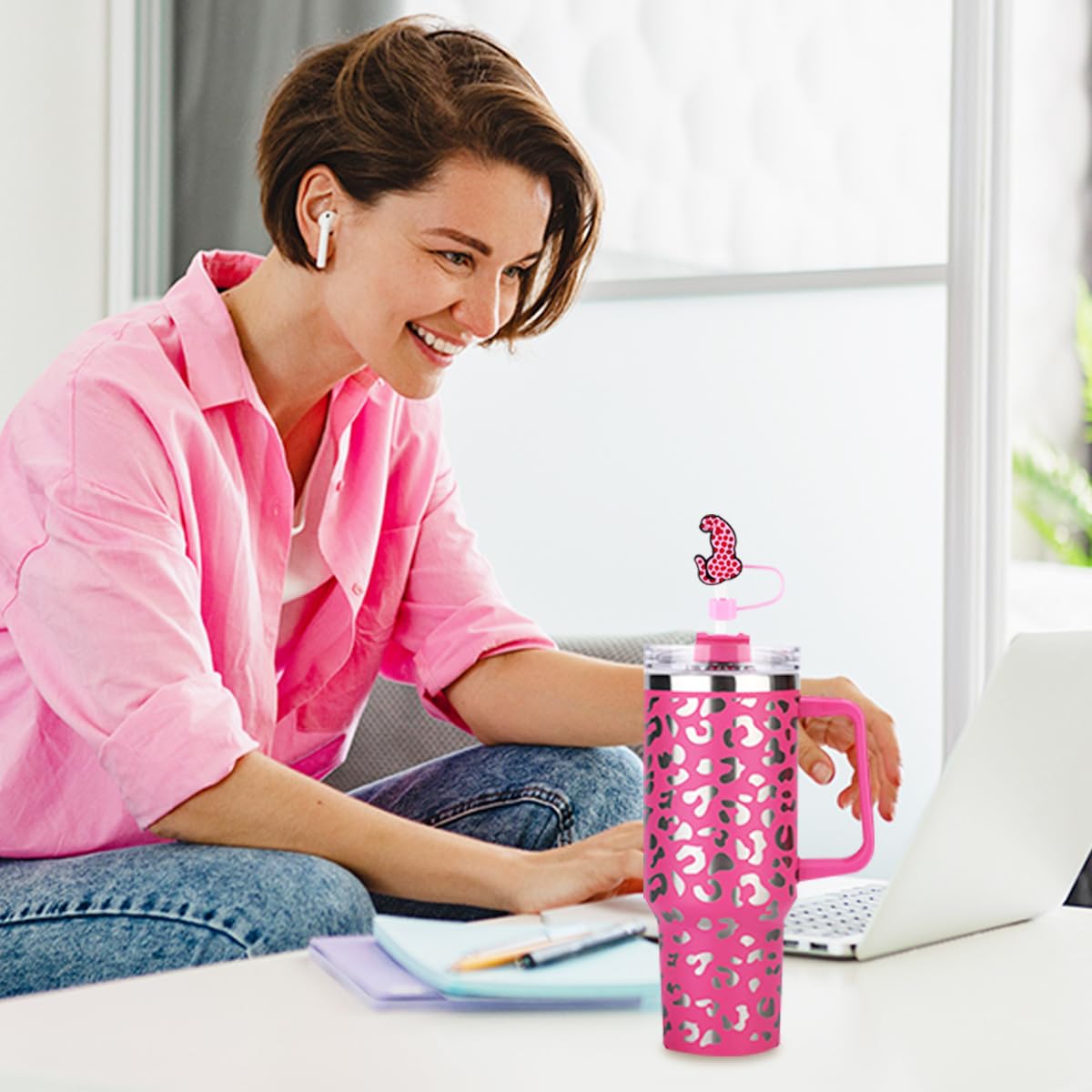 16Pcs Preppy Pink Straw Cover Topper for Stanley 40oz Tumbler Cowgirl Straw Cap for 0.4inch Straws Stanley Cup Accessories