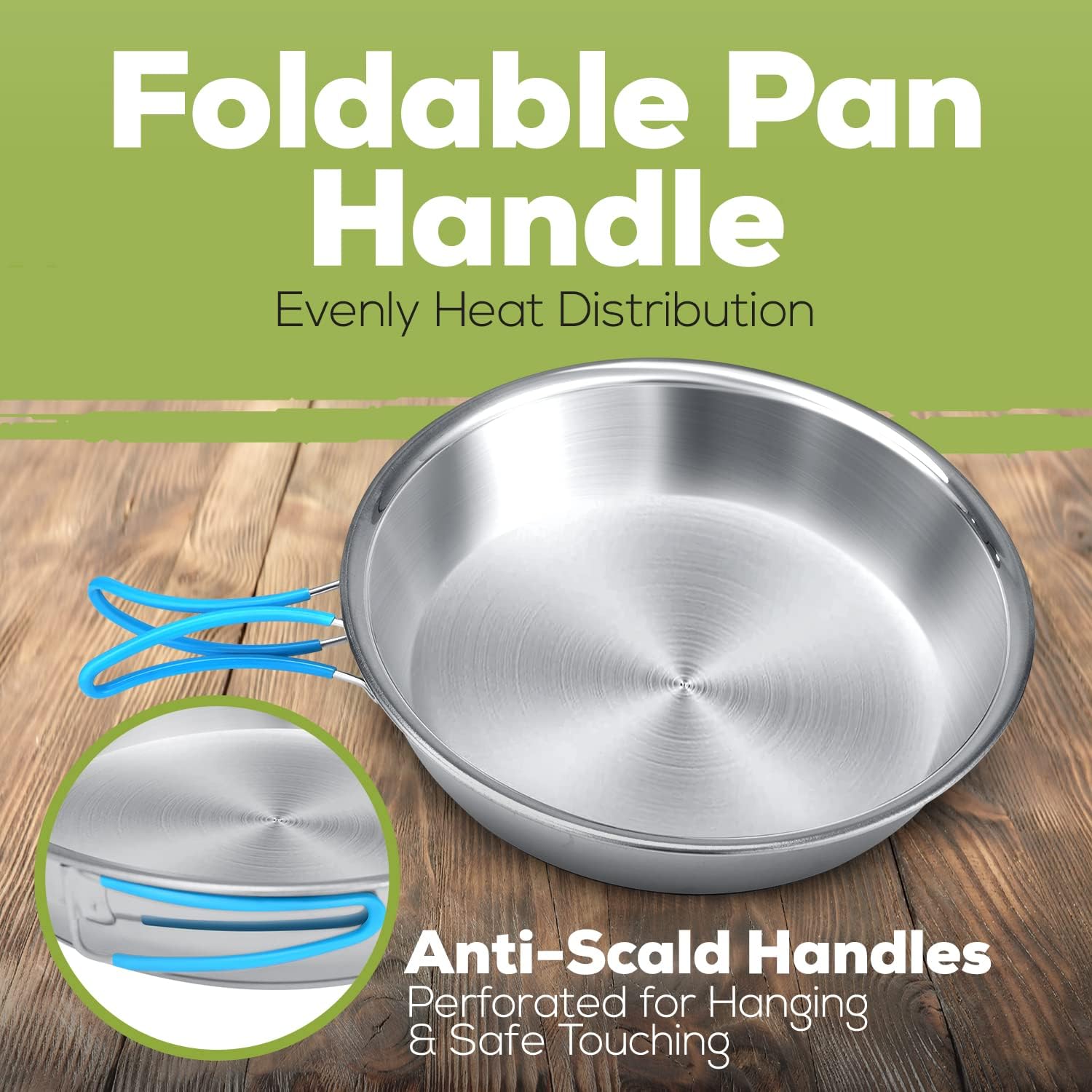 17-Piece Stainless Steel Camping Cookware & Dinnerware Set - Pots, Pans, Plates & Sporks in Travel Bag for Outdoor Adventures