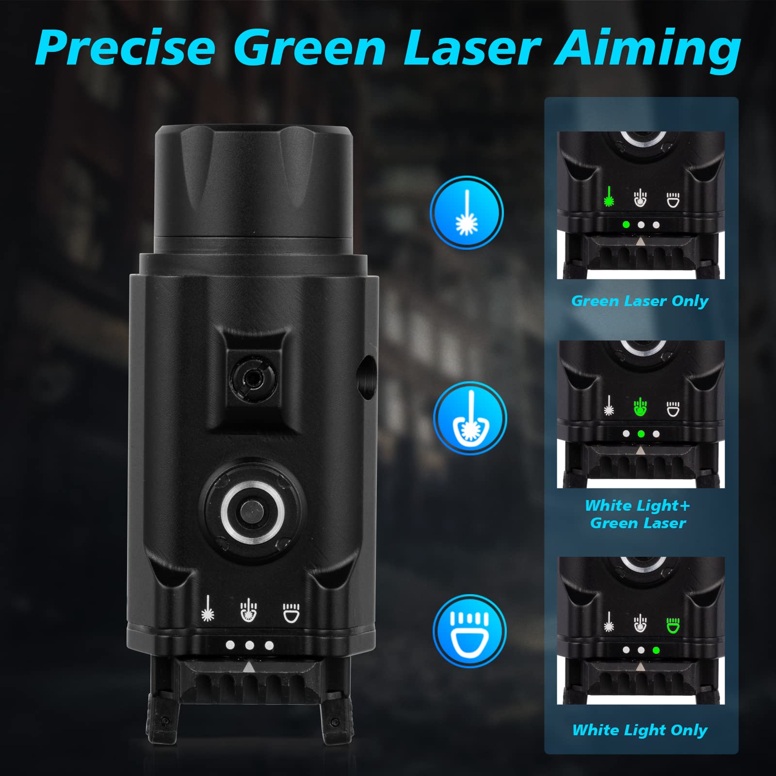 1750 Lumens Pistol Flashlight Laser, Aircraft-Grade Aluminum Picatinny Weapon Light, Adjustable Rail-Mounted Handgun Light and Green Laser Combo, Magnetic Rechargeable LED Tactical Weapon Flashlight