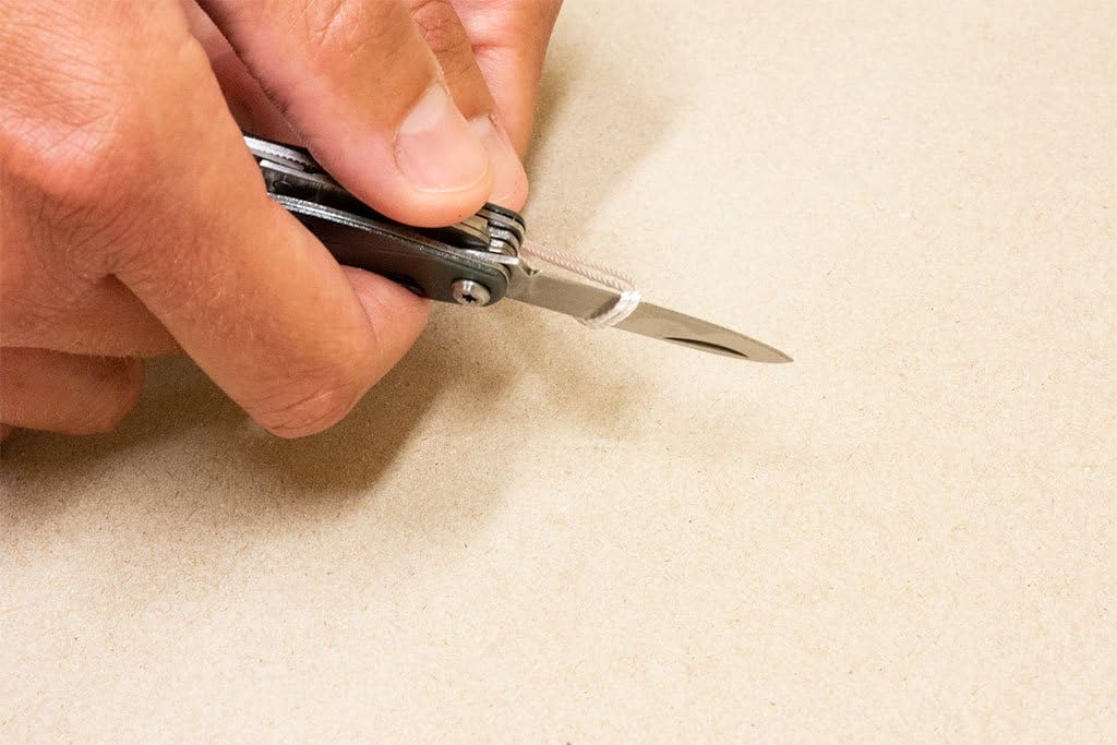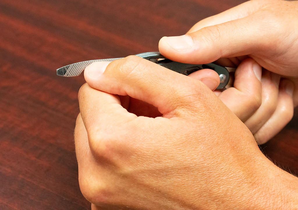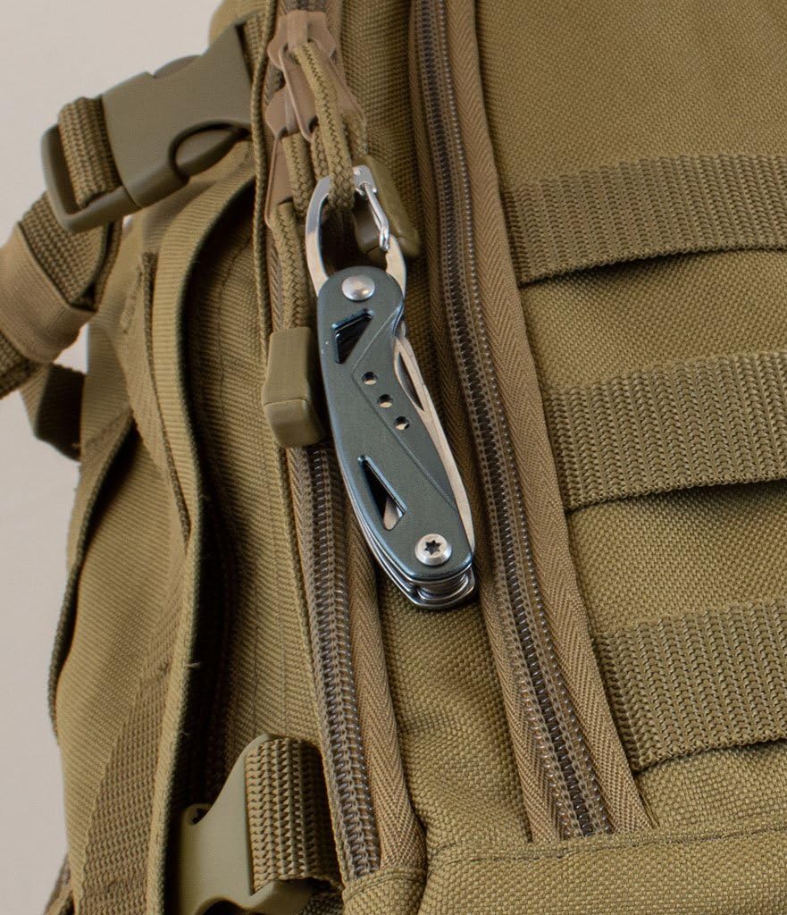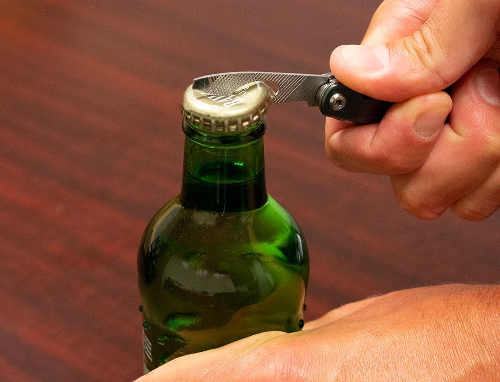- 6-in-1 Multi-Tool is designed with common tools such as a sharp edge, bottle opener, and scissors built-in.