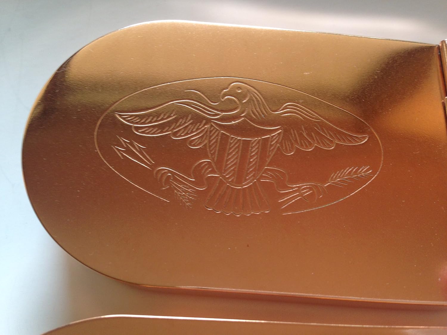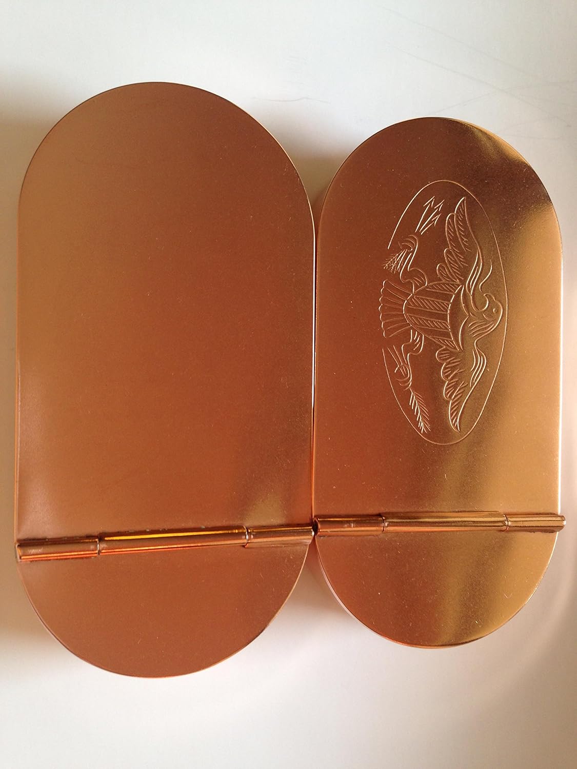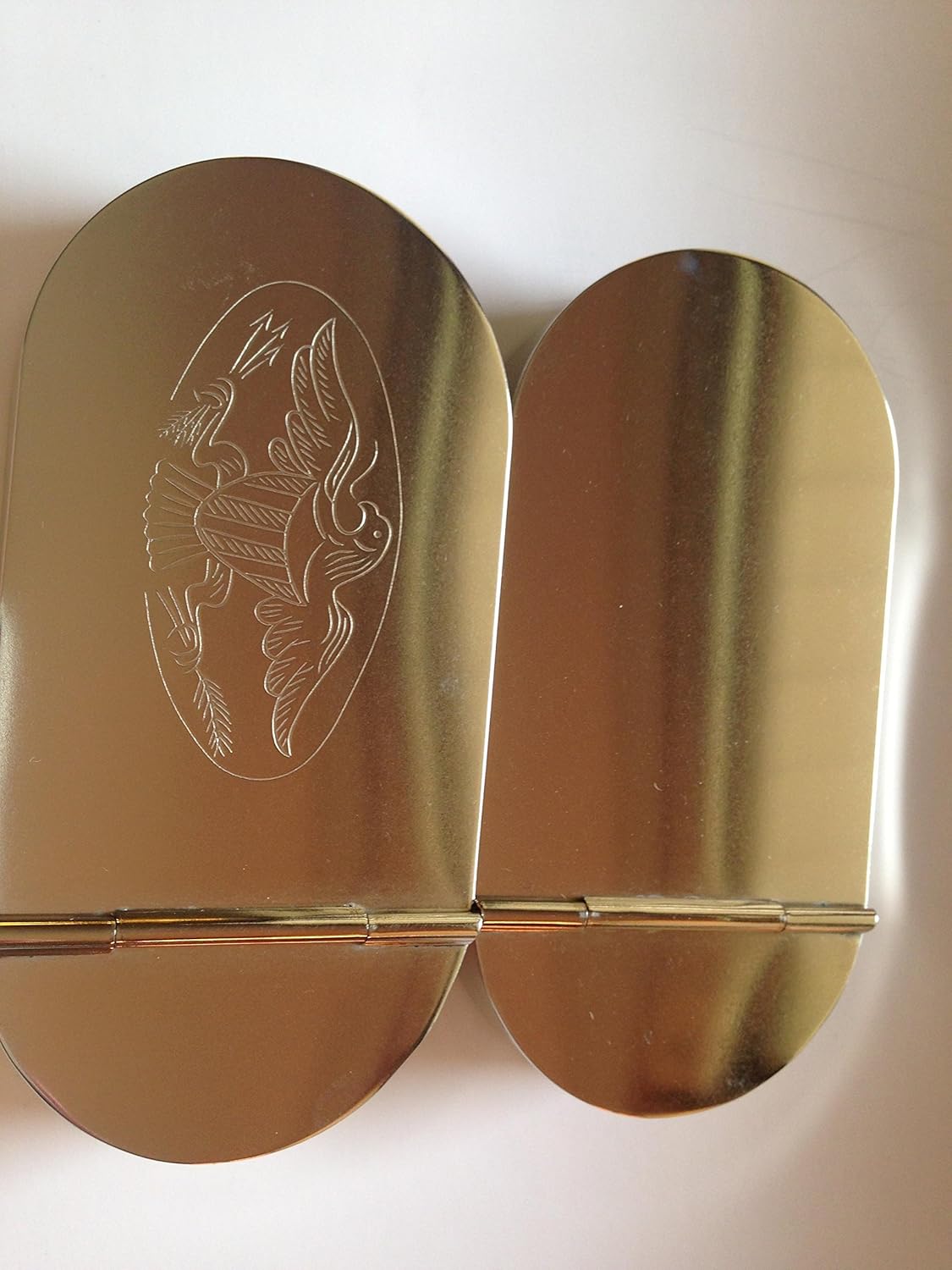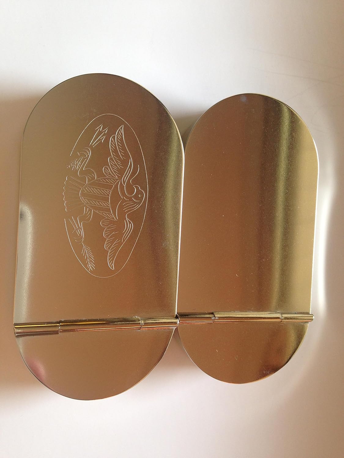 The 1790 Tobacco Box is available in brass, copper and German silver, both engraved with the early American eagle design or plain. It was used to carry tobacco, fire starting materials, patches or any one of a number of uses. This item was stocked at most early trading posts. It is proudly made in America and has hand soldered construction with no lead bearing solder used. The American ease designed is copied from a period hand engraved original. It measures 4" x 2" x 5/8". "German silver" is 65% Copper, 18% Nickel and 17% zinc.