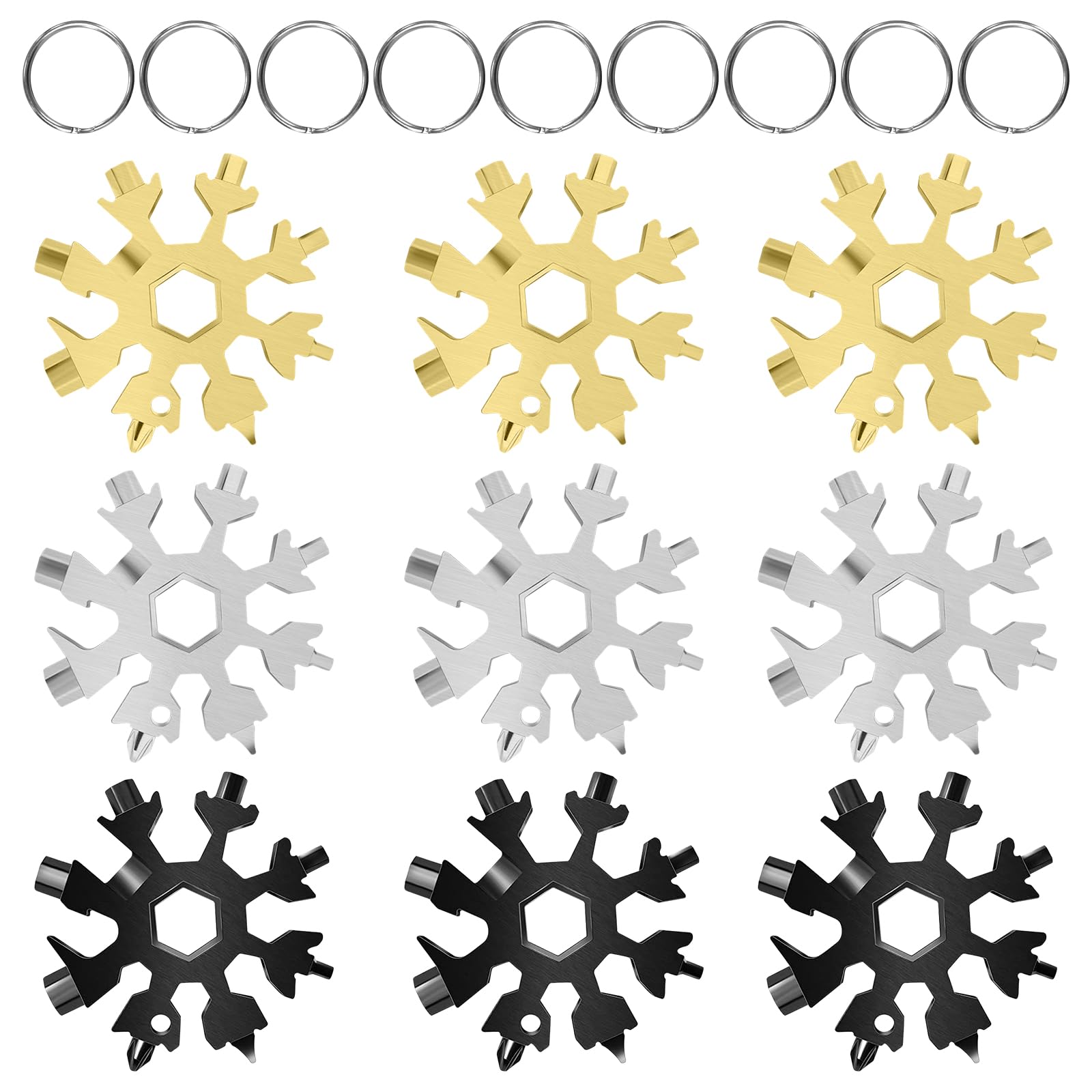 18 in 1 Snowflake Multi Tool 9 Pack Stainless Steel Snowflake Bottle Opener/Flat Phillips Screwdriver Kit/Wrench, Xmas Gifts Stocking Stuffers for Adults, Durable and Portable to Take