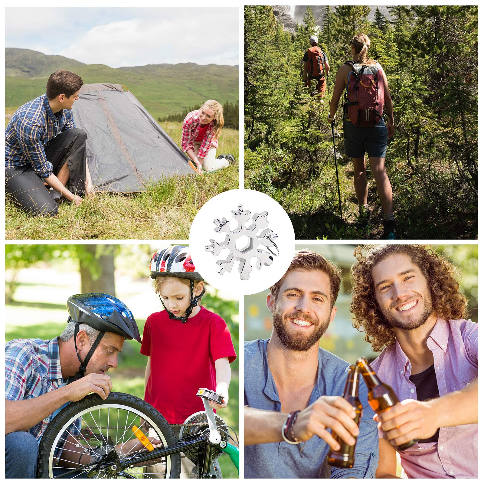 - 18-in-1 Snowflake Multi-tool:Slotted Screwdriver , Bottle Opener,Key Hole,Phillips Screwdriver: Metric (millimeter) - 3;Allen Wrench: Metric (millimeter) - 3-4-5-6-7-8-16;Outer Hex Wrench:Metric (millimeter) -8-9-10-11-12-13-14.