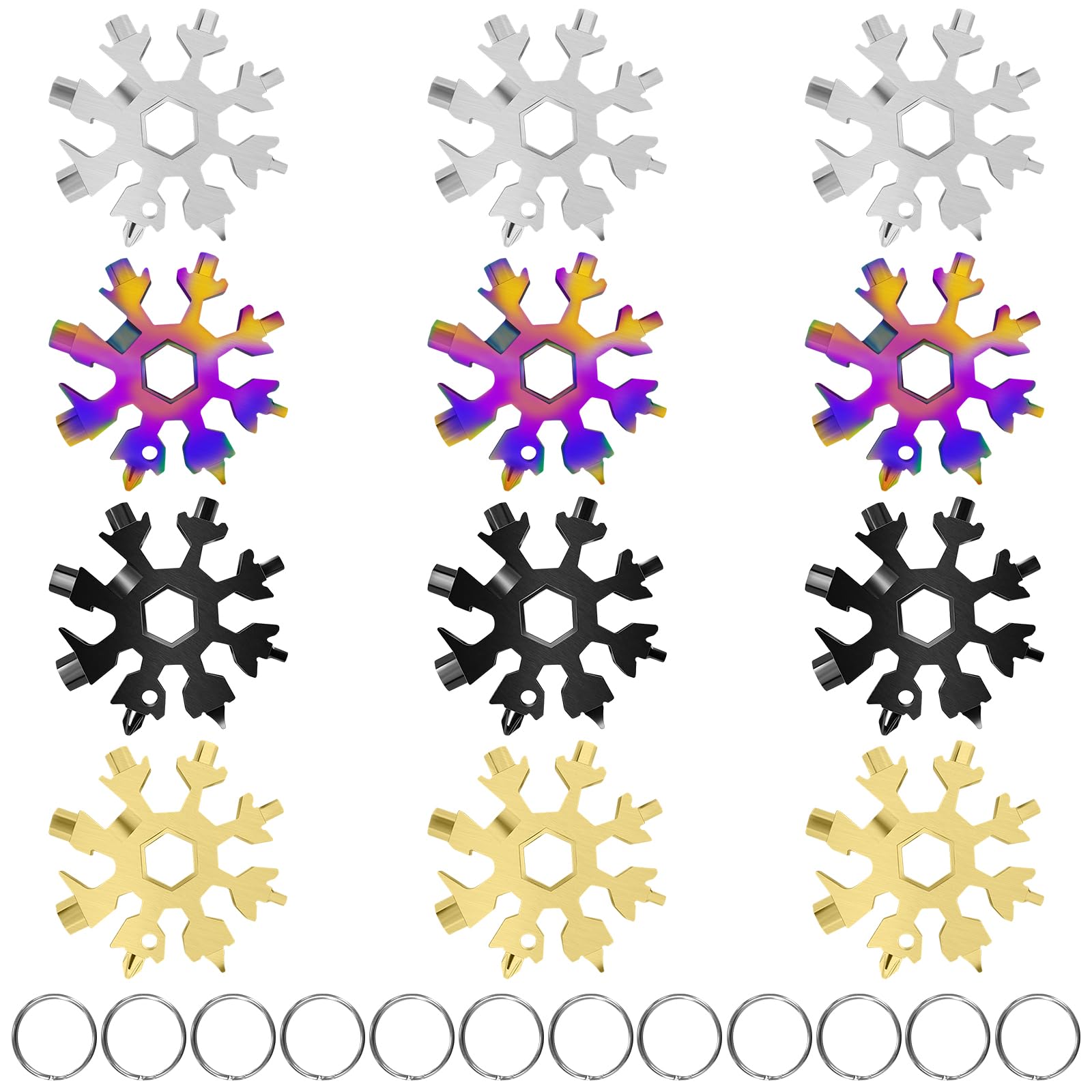 - Value Pack -12 Pcs 18-in-1 Snowflake Multi-Tool, 4 colors, each with a key ring