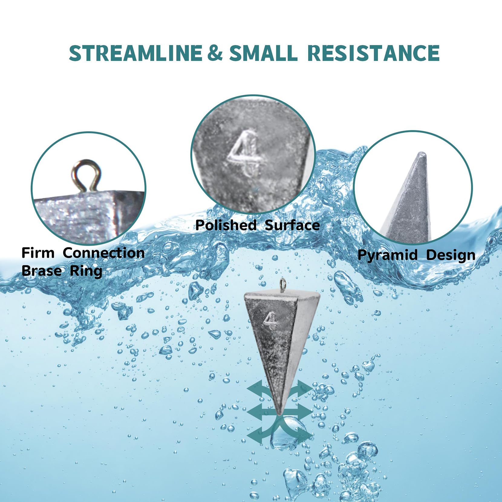 - Efficient Fishing Weights Sinkers: Our fishing weights sinkers set includes 18 pieces of 4OZ pyramid sinkers, designed to enhance your fishing efficiency by enabling your bait to sink quickly and stay stable.