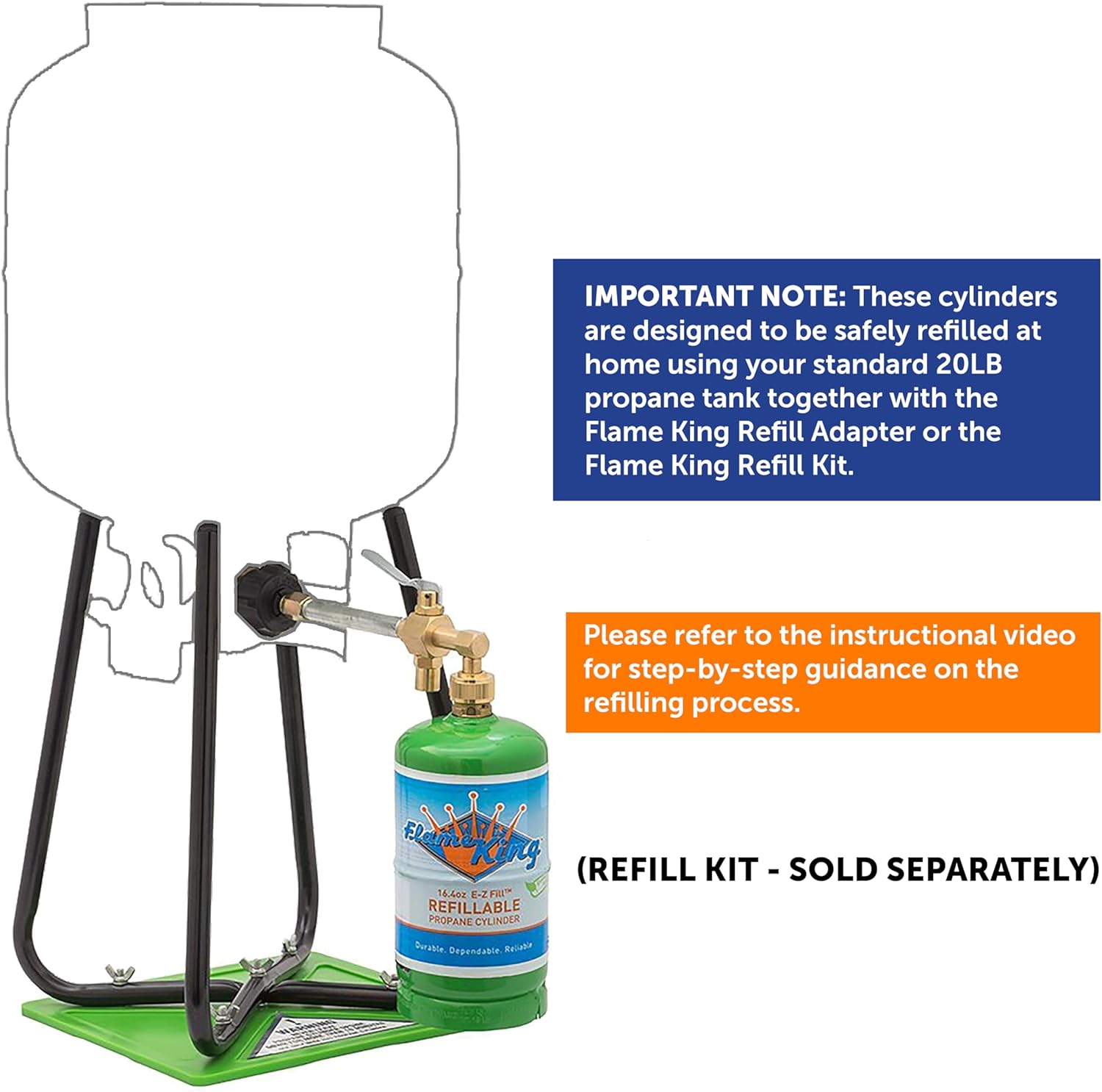 - REDUCE WASTE - Keep disposable propane tanks out of the environment by using the Flame King 1LB refillable cylinders