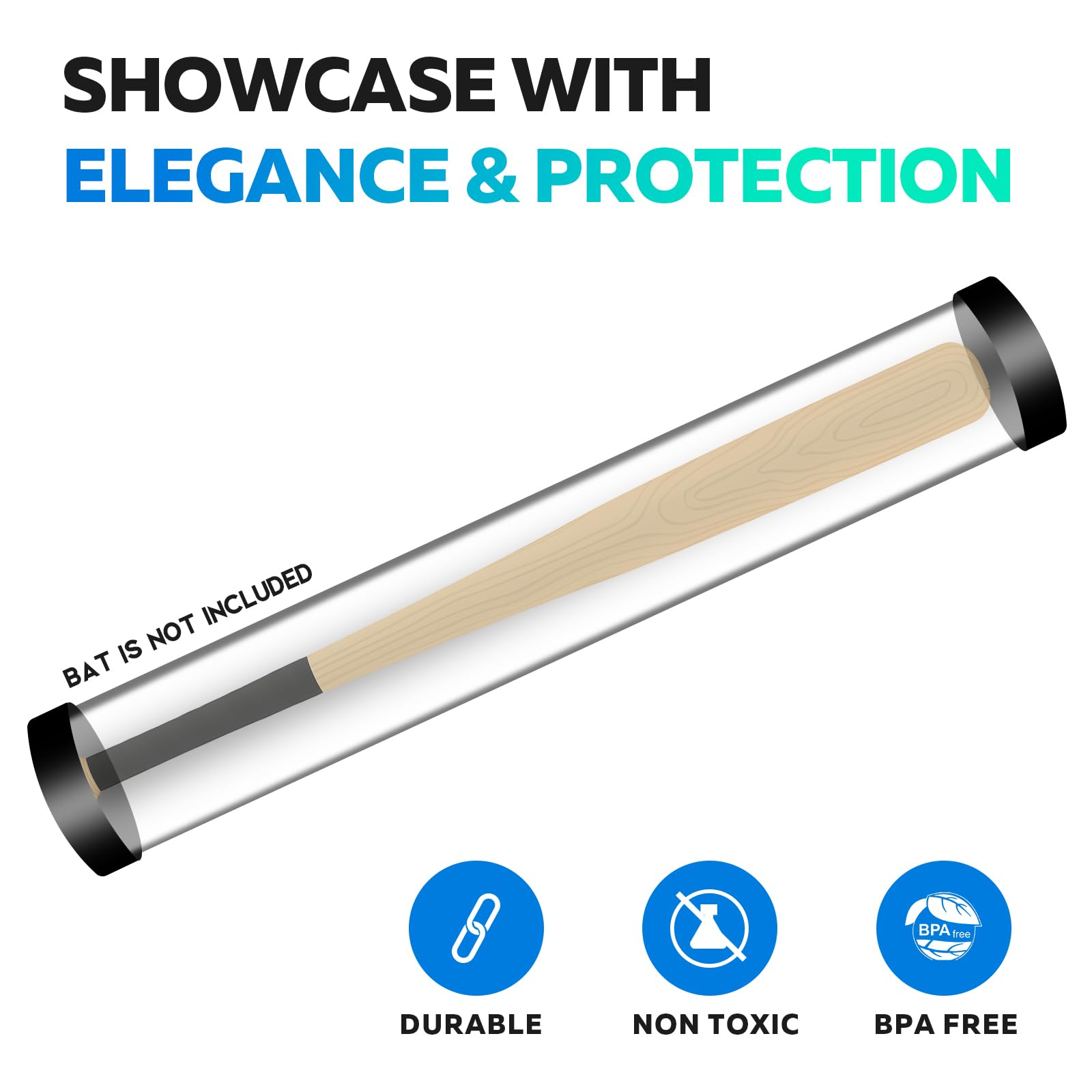 1Pc Round Baseball Bat Display-Case - Protect and Collect Baseball Bat, Baseball Stick Display Box with Black Rubber End Cover, Perfect for Baseball Stick Display, 2 3/4 "x 34" Dimensions, Bat Tube