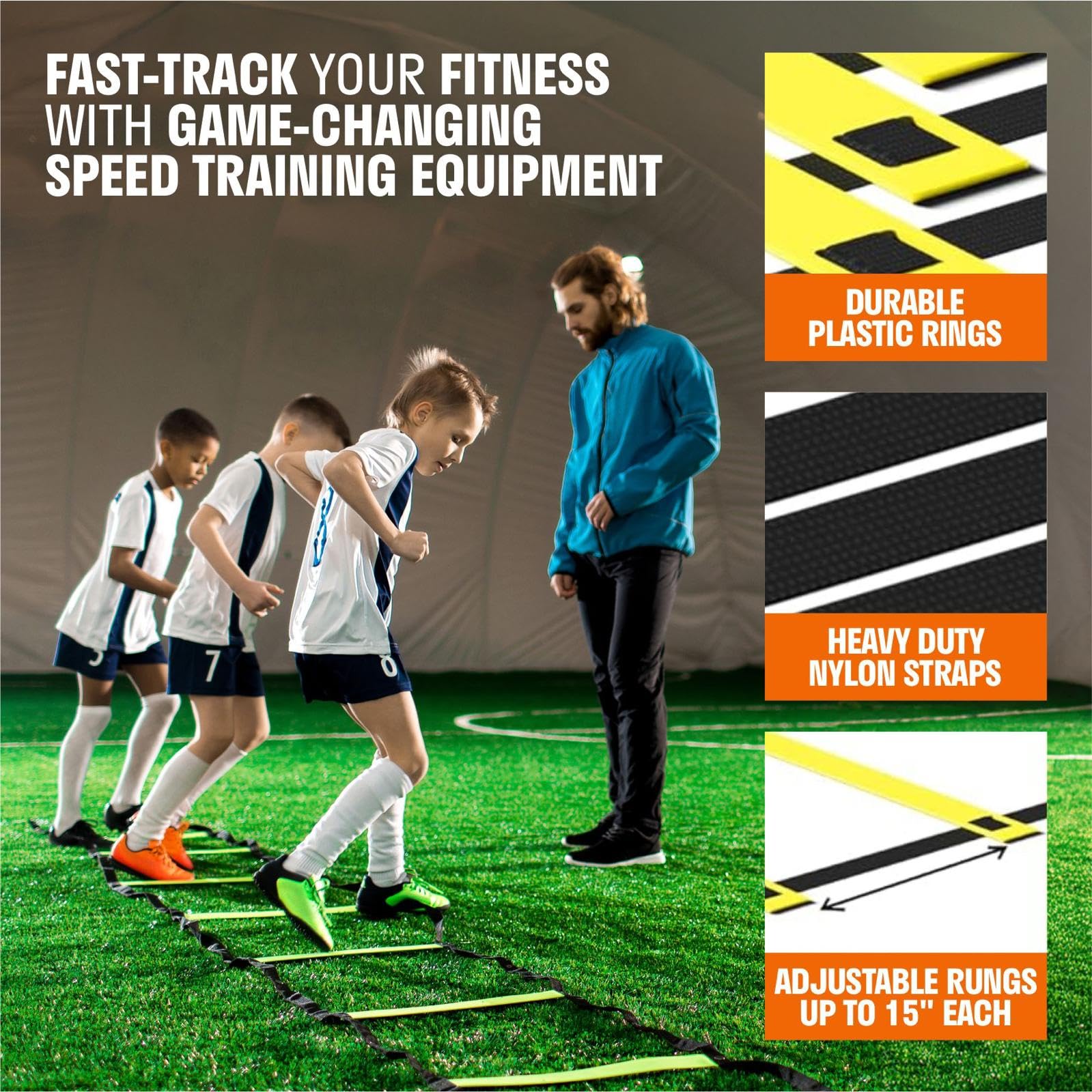 - BOOST YOUR AGILITY - Improve footwork and coordination using the speed agility ladder. Navigate through the rungs to increase quickness and enhance overall athletic performance on the field