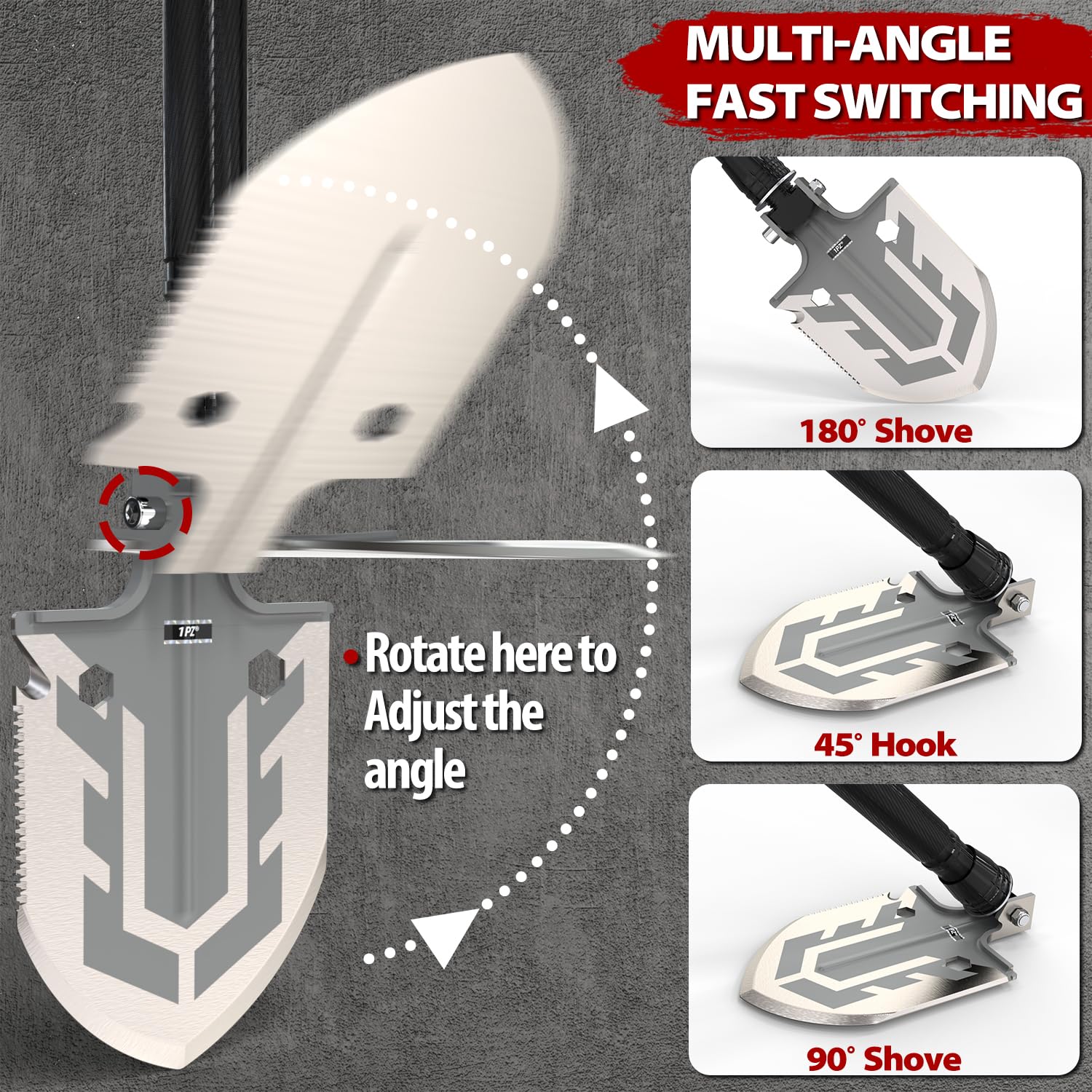 1PZ NV5-KC2 Folding Survival Shovel, 180 Degree Folding Shovel-Camping Shovels, Multifunctional Survival Gear and Equipment Tactical Camping Gear Survival Tools for Caping Hiking