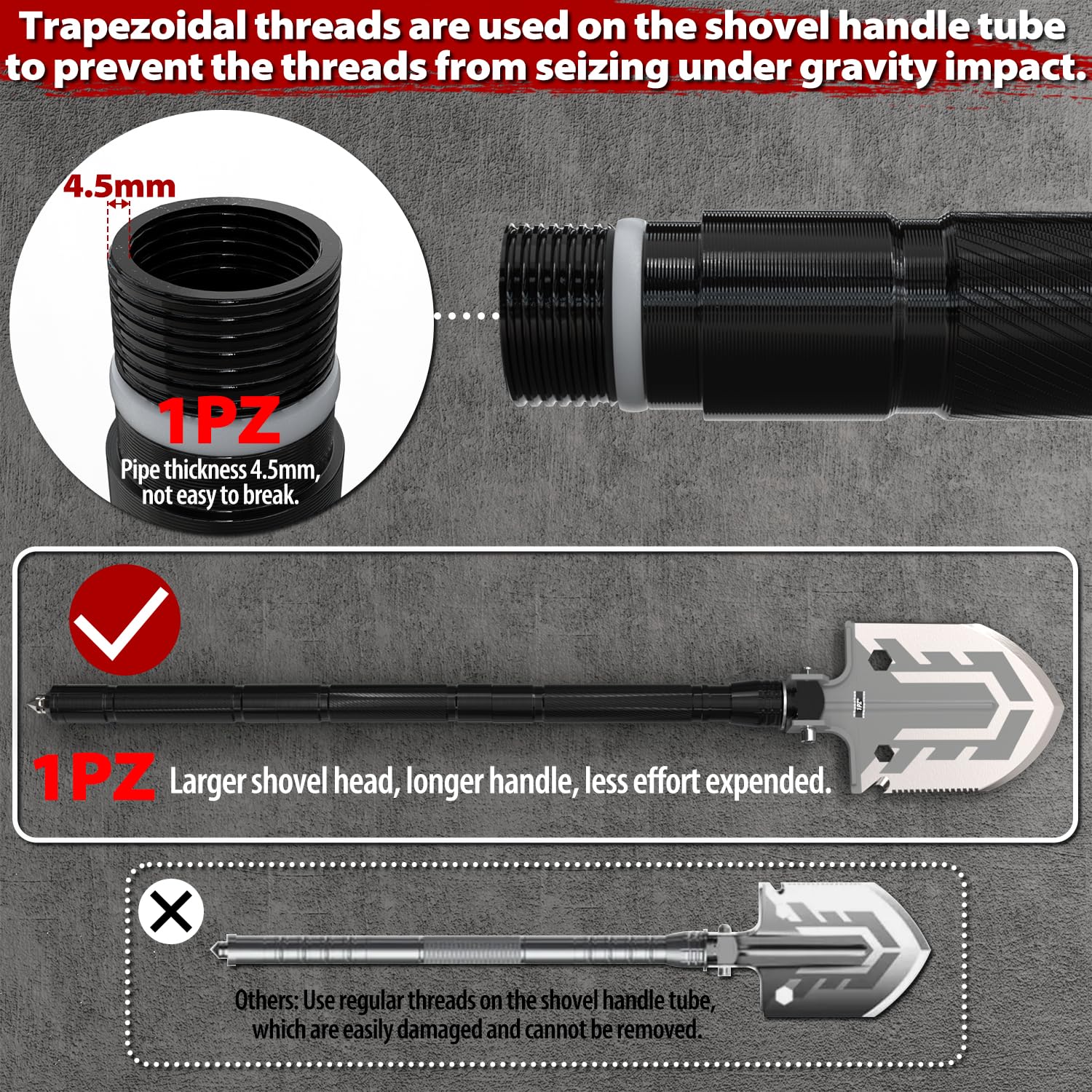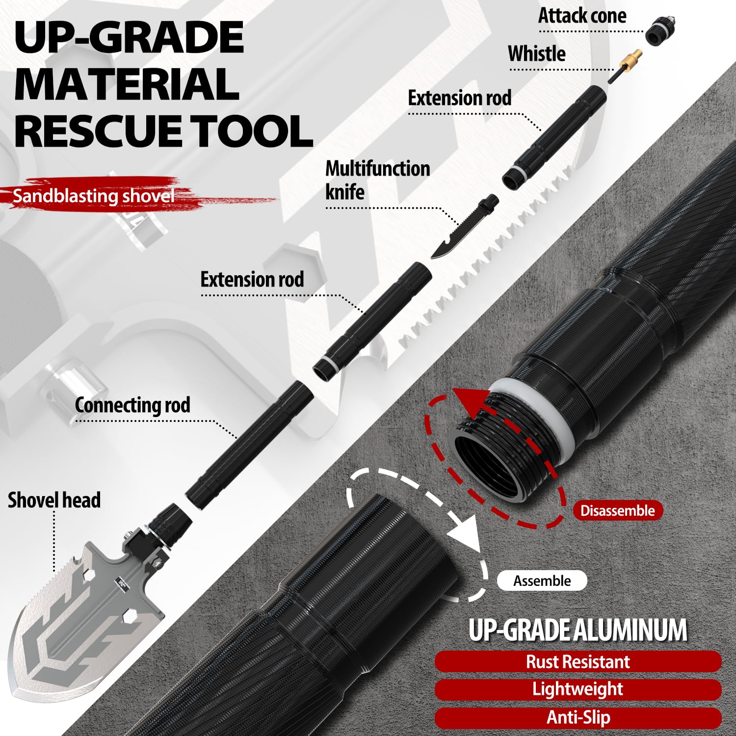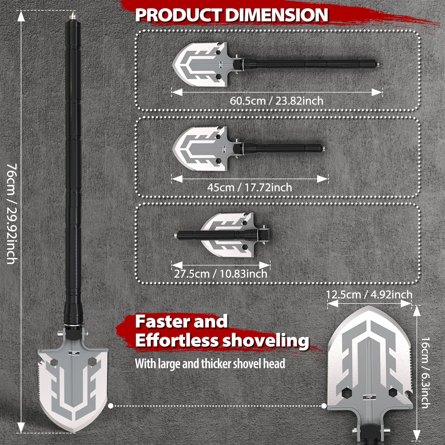 - Upgrade Survival Shovel - This survival tool set constructed with high-carbon steel with high-strength and wear-resistant performances that make it sturdy enough deal with survival activities or car and truck emergency.