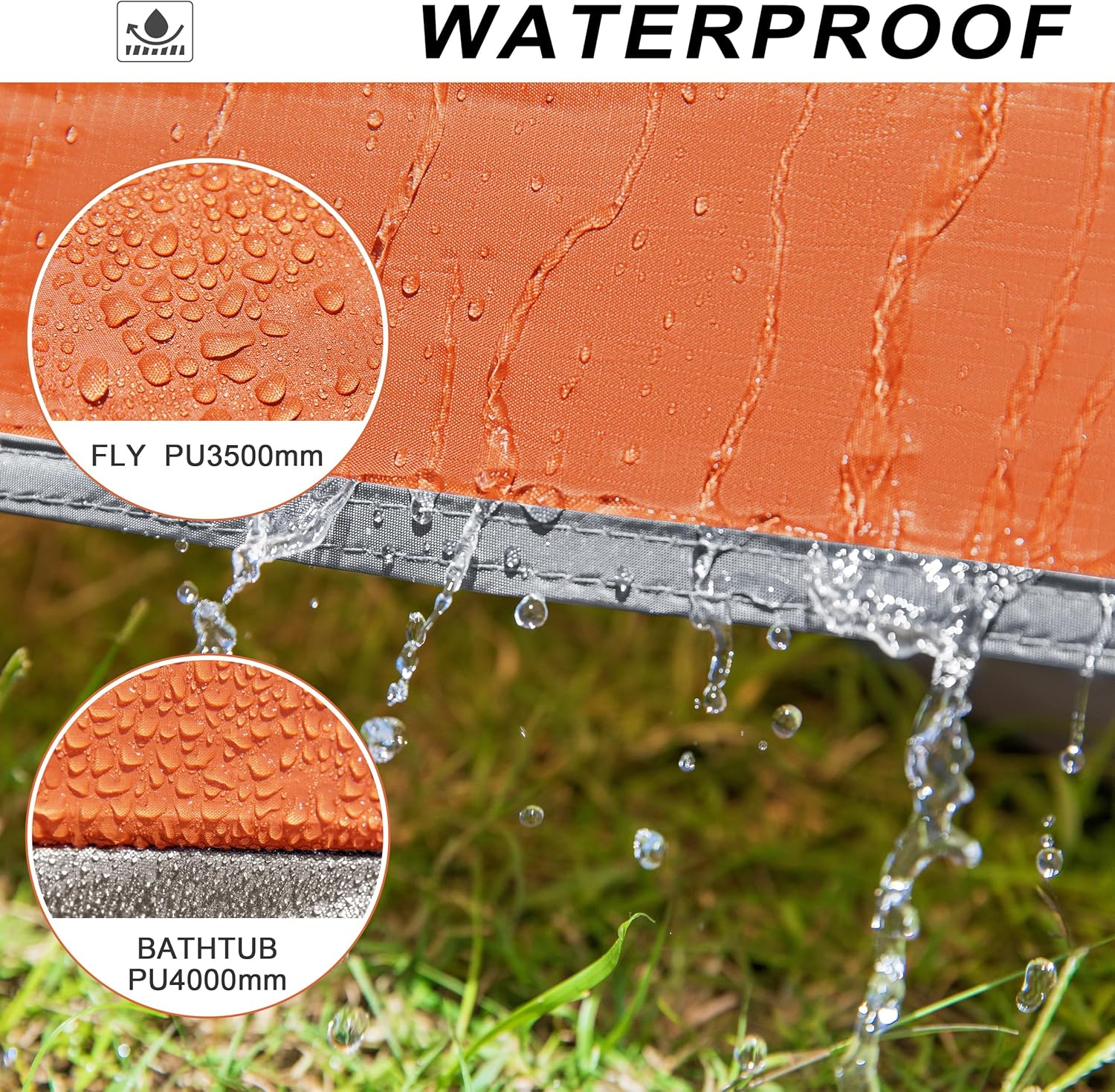 - Waterproof Tent:With a PU 3500mm rainfly and poly oxford 300D 4000mm water resistance on the bathtub floor, backpacking tent offers excellent waterproof performance to meet any condition. Seam taping on the zipper, velcro wrap with PVC & seam taping, and 4 bottom corners with seam taping provide added protection against rain and moisture. Plus, 3 person tent meets CPA1-84 fire retardant standard and UPF 50+ for enhanced safety.