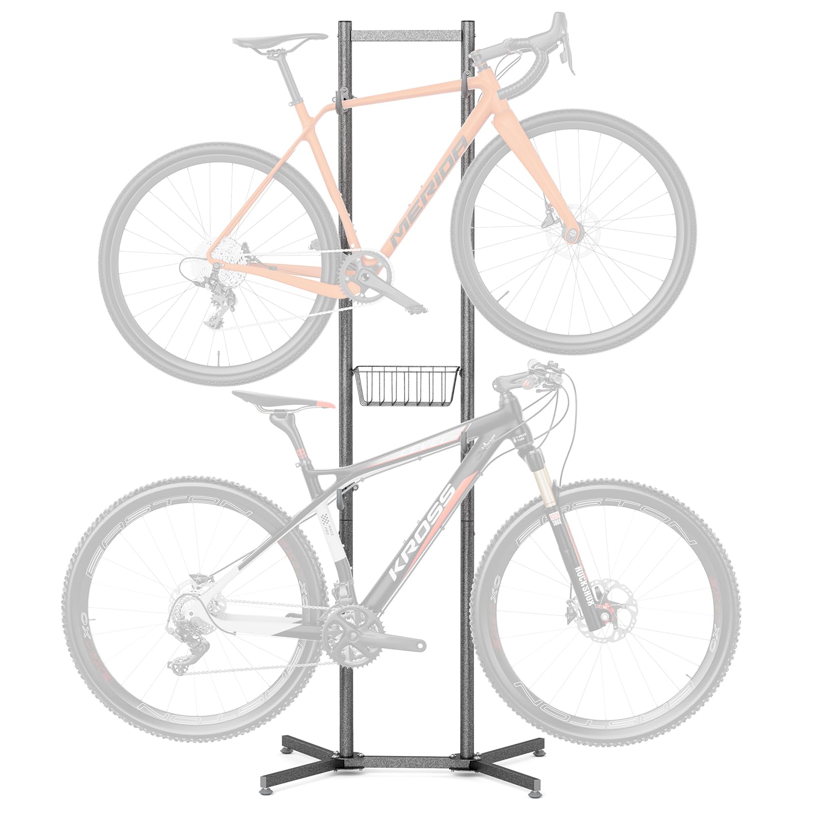 2-/4-Bike Storage Rack with Basket - Bike Rack Garage for Road, Mountain and Hybrid Bike Garage & Home (for 2 Bikes)