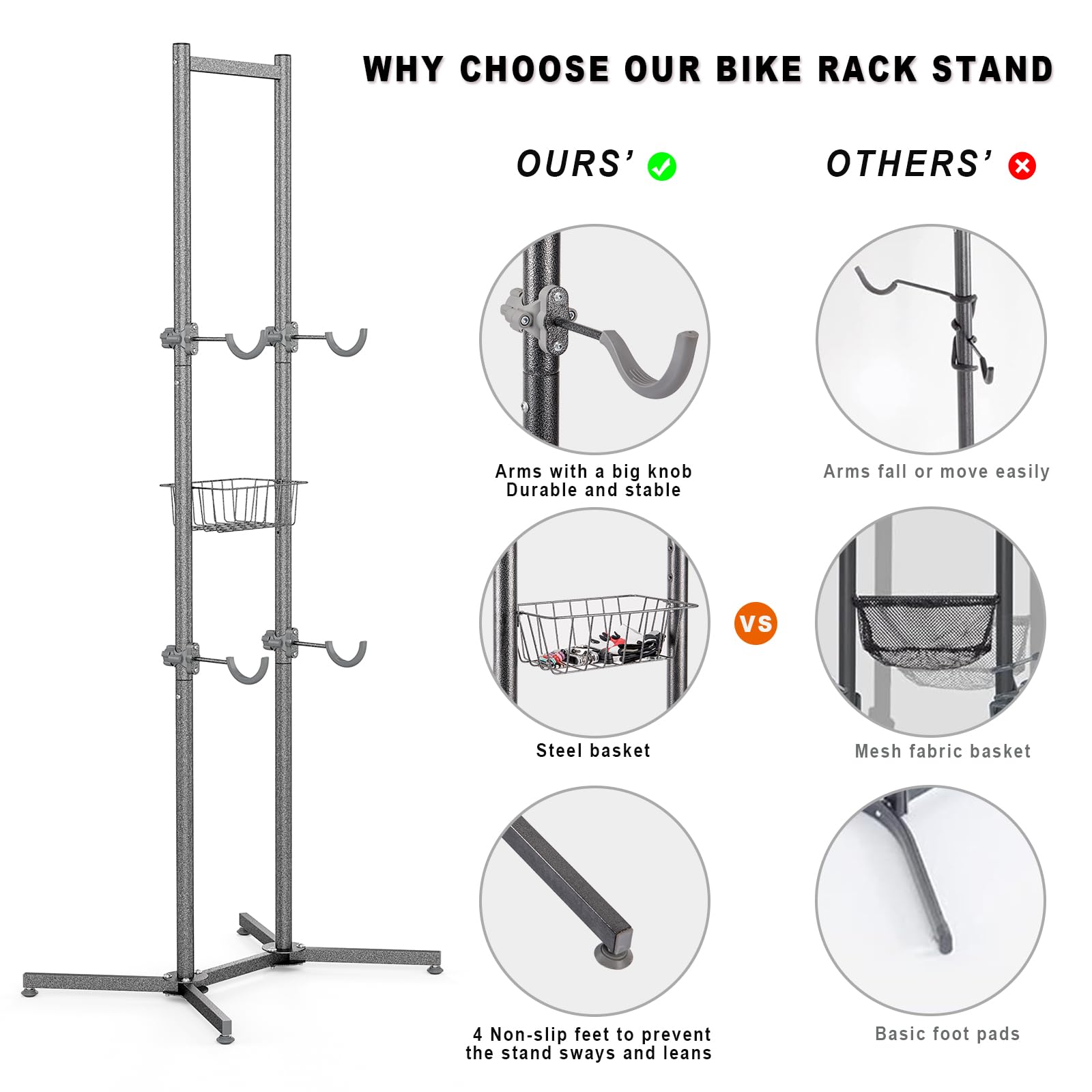 - 【Perfect Bike Rack to Save Space】: With its capacity to comfortably fit 2 bikes or 4 bikes. Our bike stand rack serves as the paramount bike storage solution for various settings – be it your garage, basement, backyard, or even outdoor for amazing space-saving convenience.