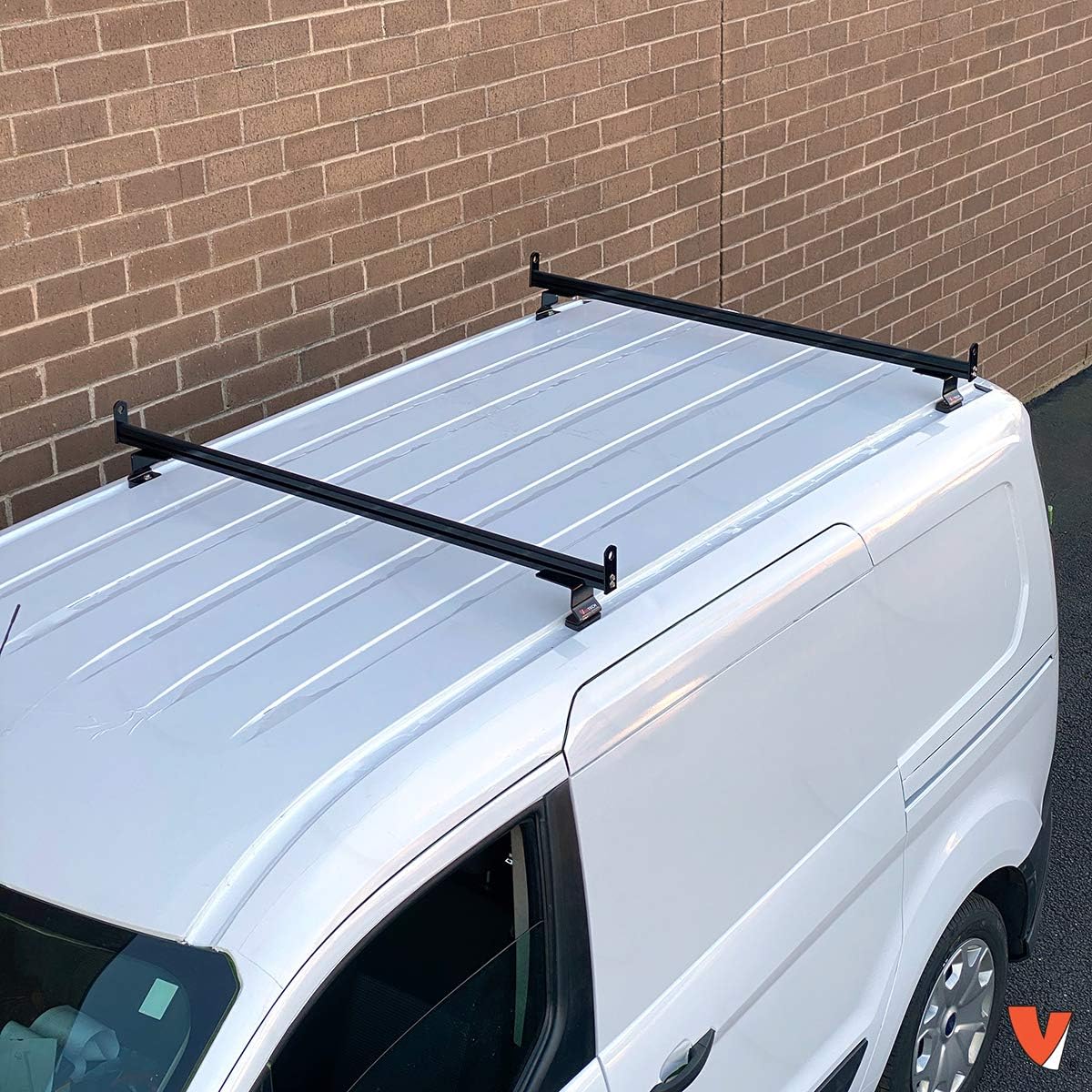 Introducing the redesigned Vantech AMZ 2-bar bolt-on system with noise reducing wind deflector. Fits directly into the OE mounting points. No drilling required. The system is made from lightweight aluminum weighing just under 10 lbs. A great new edition to the new AMZ rack system is the front foil to reduce wind noise. This 2 bar rack system will fit the Ford Transit Connect 2014-On SWB & LWB models. Does not fit vehicles with panoramic sunroofs