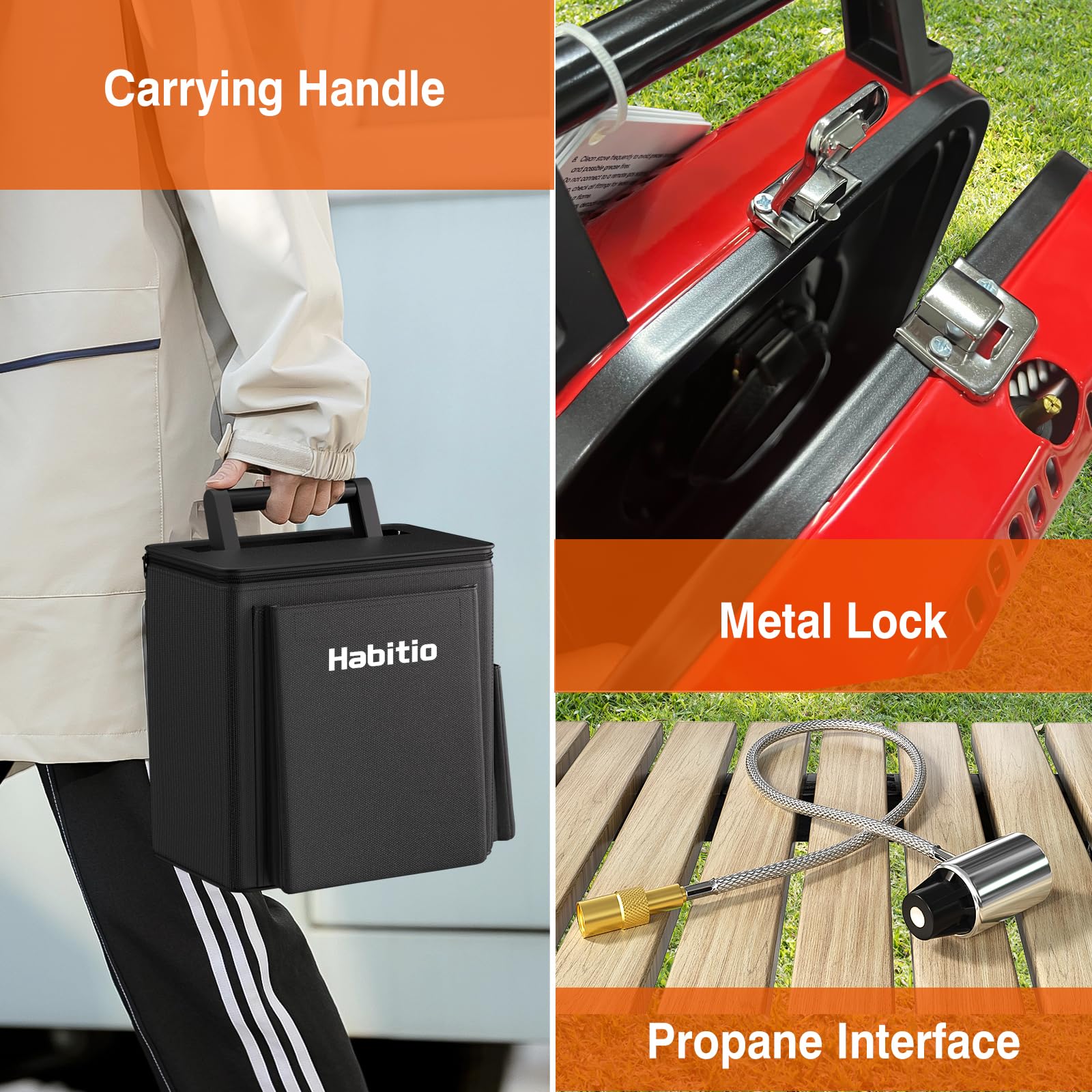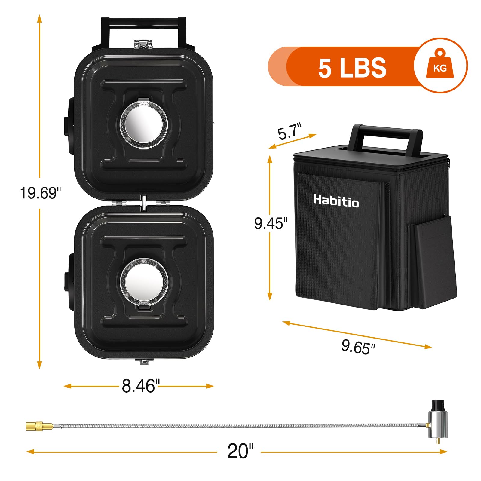 - Foldable Design: The folding size of the Habitio camping stove is only 10.5*8.5*5.1 inches, and weighs 5 lbs; It features a carrying bag that can store all accessories and propane tank, which is very suitable for storage and carrying, make your camping more convenient