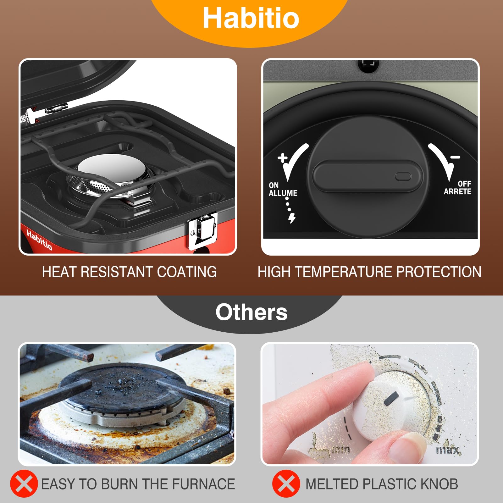 - Adjustable Firepower: The control knob is designed with piezo ignition and rotary button adjustment, making it easier to light the burners; Multiple burners levels can be freely adjusted with one button, which can easily cope with different cooking methods