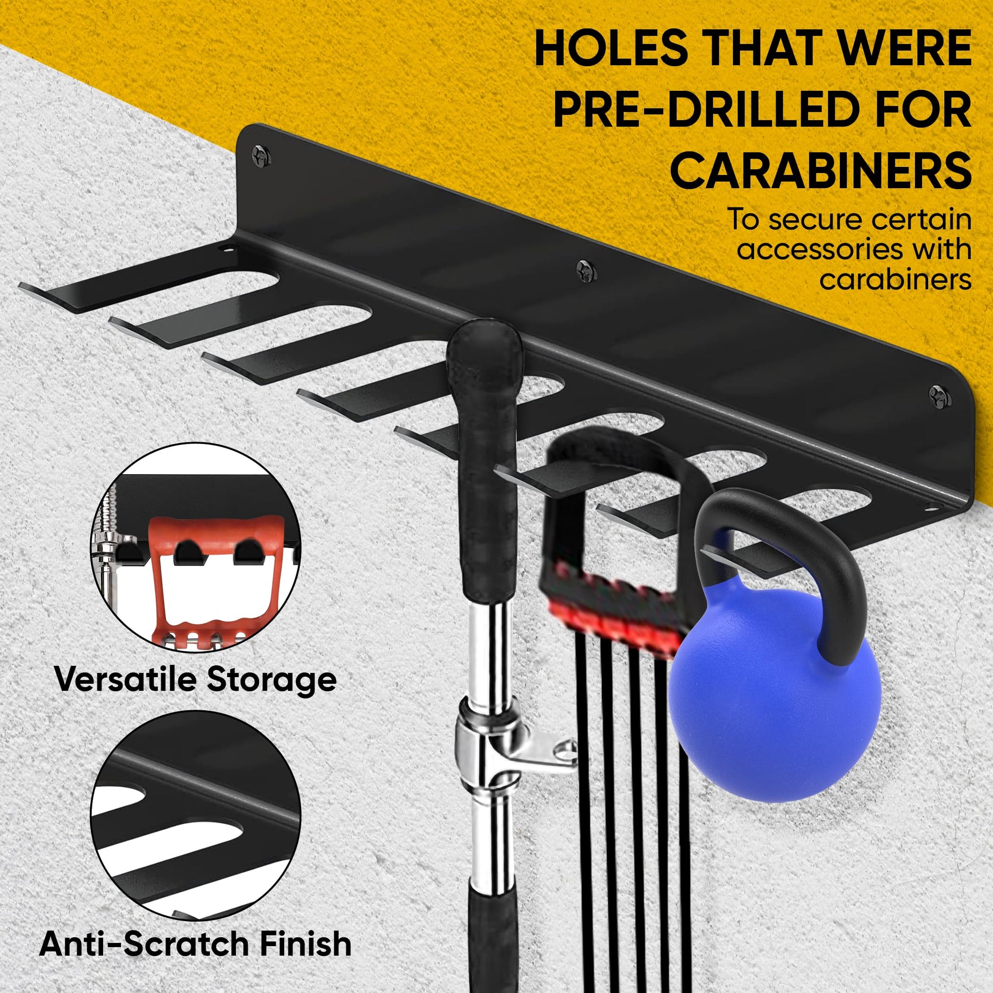- 🏋🏻♂️If you're looking for bat hangers for wall, baseball bat hanger, gym organization, efficient barbell holder wall mount for cable attachment storage, rack speediance accessories, garage gym accessories storage to put hanging equipment in a gym accessory rack this is your gym wall organizer.