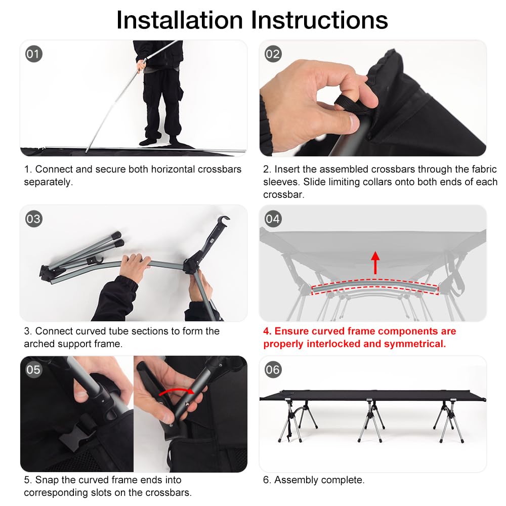 - 【Sturdy and Stable】 The folding cot is constructed from aerospace-grade 7075 aluminum alloy, which is 67% stronger than standard aluminum alloys. It can securely support the cot, preventing it from tipping over while sitting or sleeping. Our lightweight cot has a total of 3 support legs and 12 extending legs to provide better stability. It can easily support weights of up to 330 pounds.