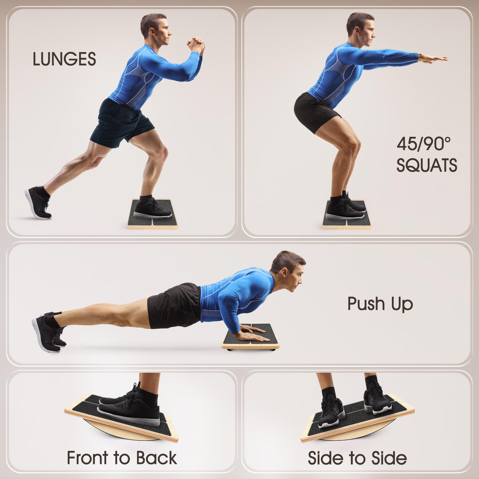 - Built for Safety: Crafted with high-quality heavy-duty wood, this board ensures durability and can support up to 200lbs. The non-slip surface with an antiskid pad guarantees a secure grip during workouts, while the antiskid feet and antisratching pads protect both the board and your floors.