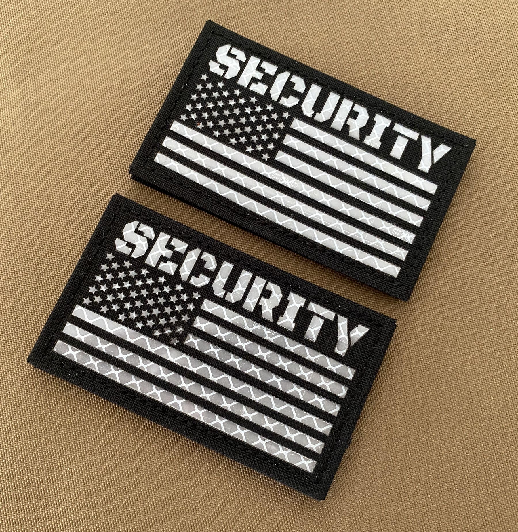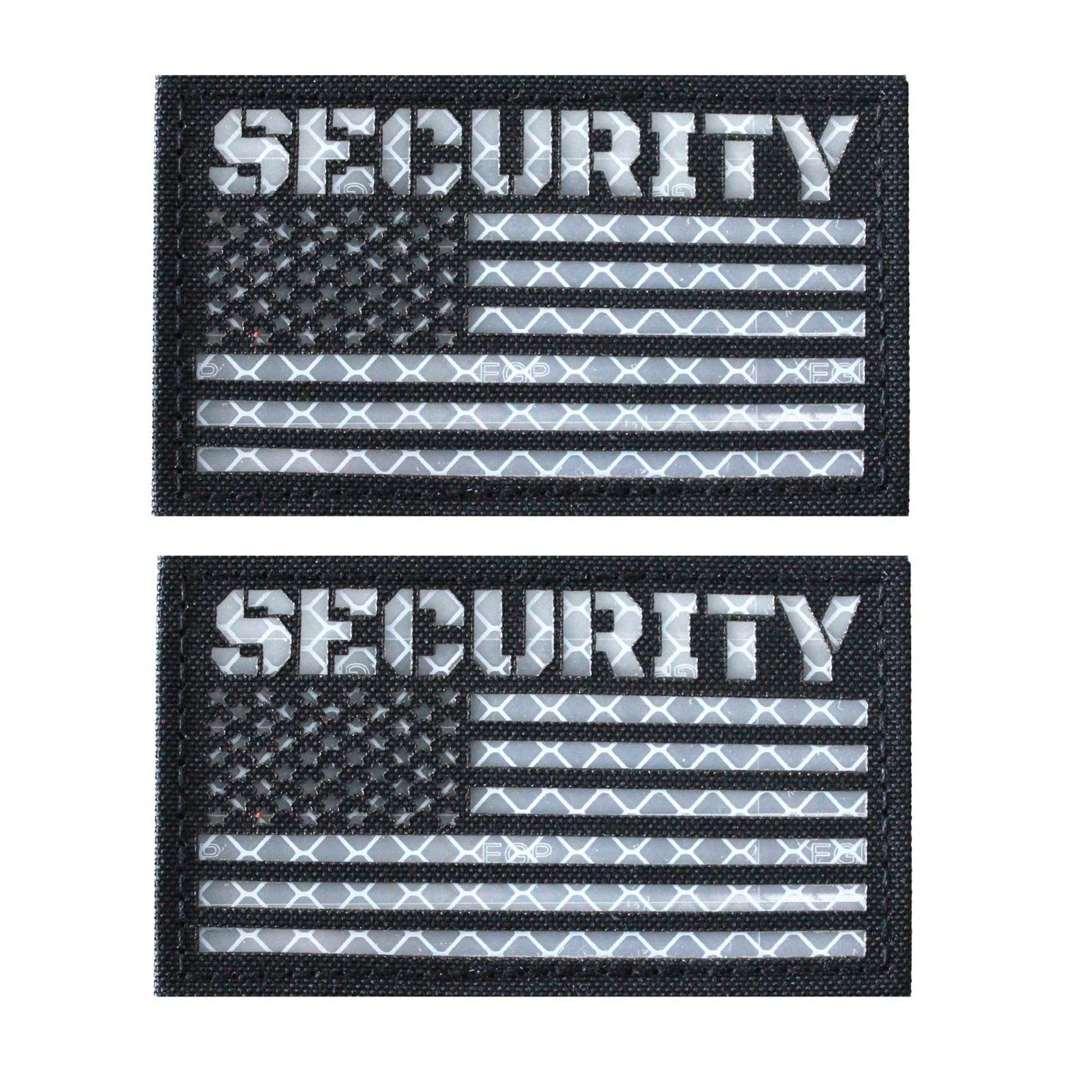 2 Pack Black White Reflective Security Patch US Flag with Hook Back for Service Harness Tactical Vest Collar Hook-Fastener Backing (SECURITY)