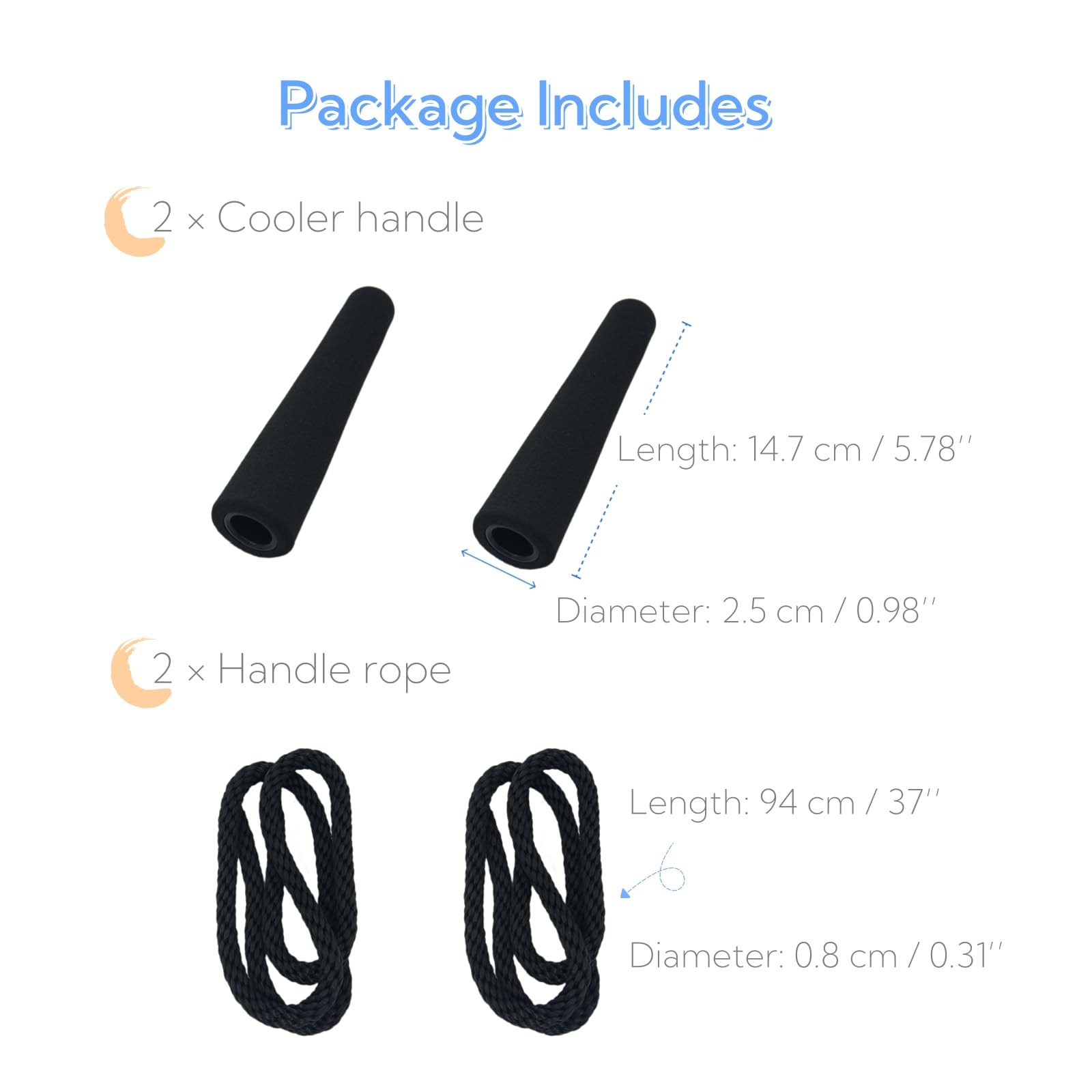 - What’s Included: 2 cooler handles (0.98” diameter, 5.78” length) and 2 heavy-duty ropes (0.31” diameter, 37” length); cooler not included; upgrade your cooler experience with this enduring, practical accessory!