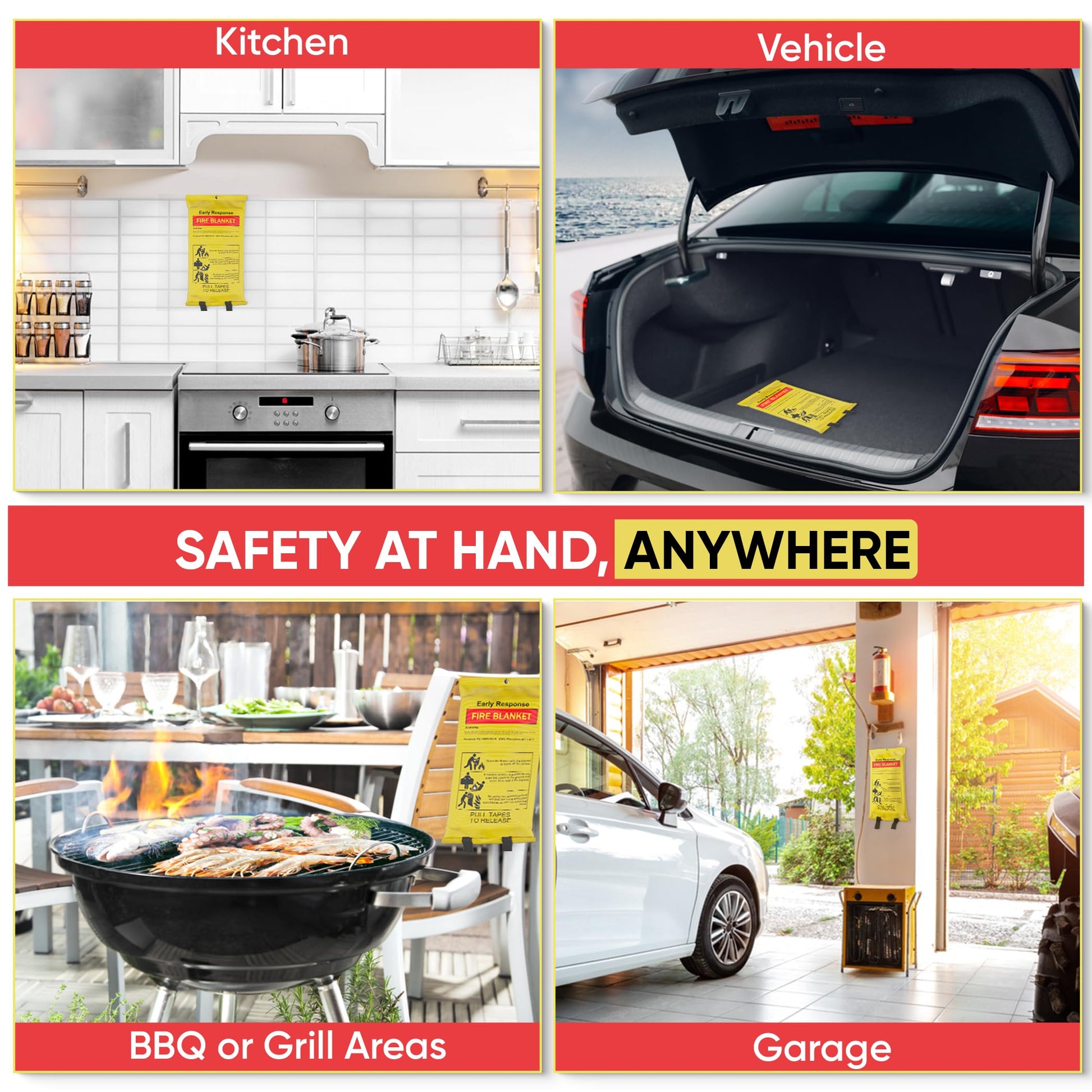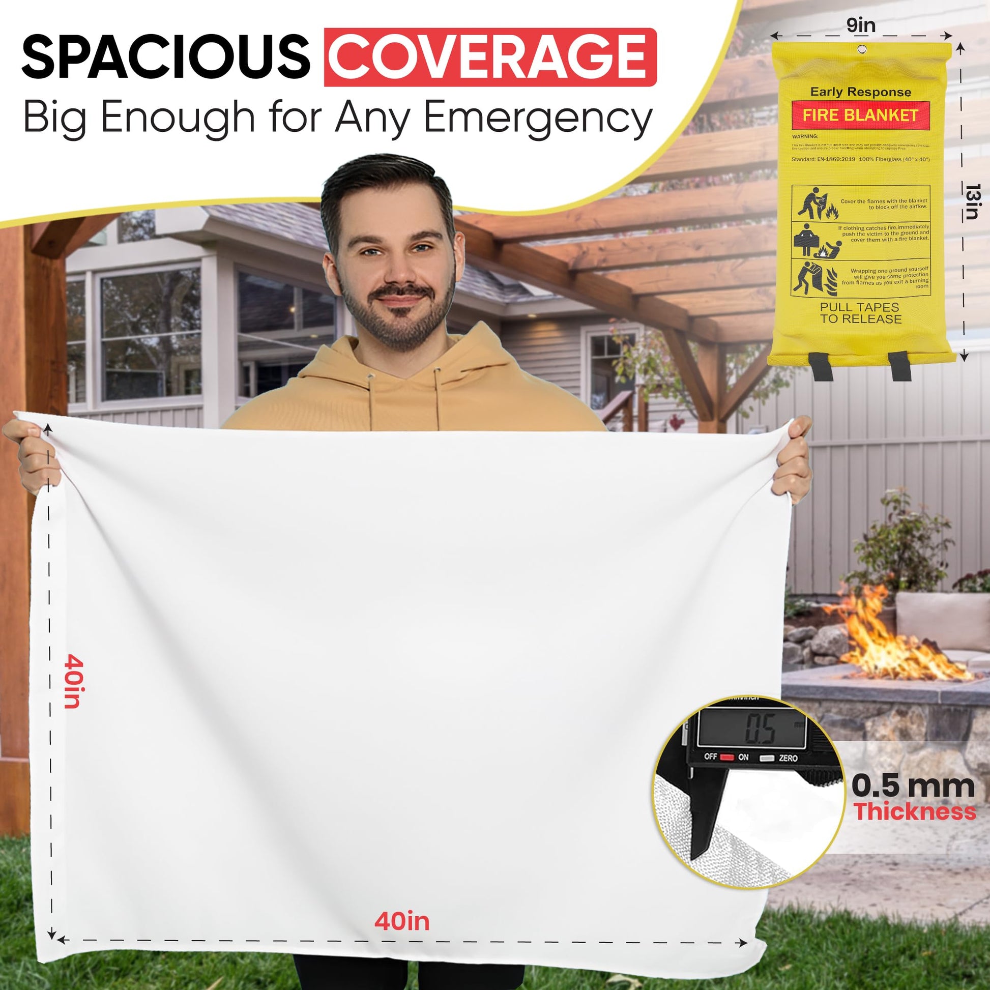 - 🔥 VERSATILE PROTECTION - Designed for versatility, our emergency fire blankets are suitable for various scenarios, including kitchen fires, camping trips, and other emergencies, ensuring you are ready & safe in any situation.