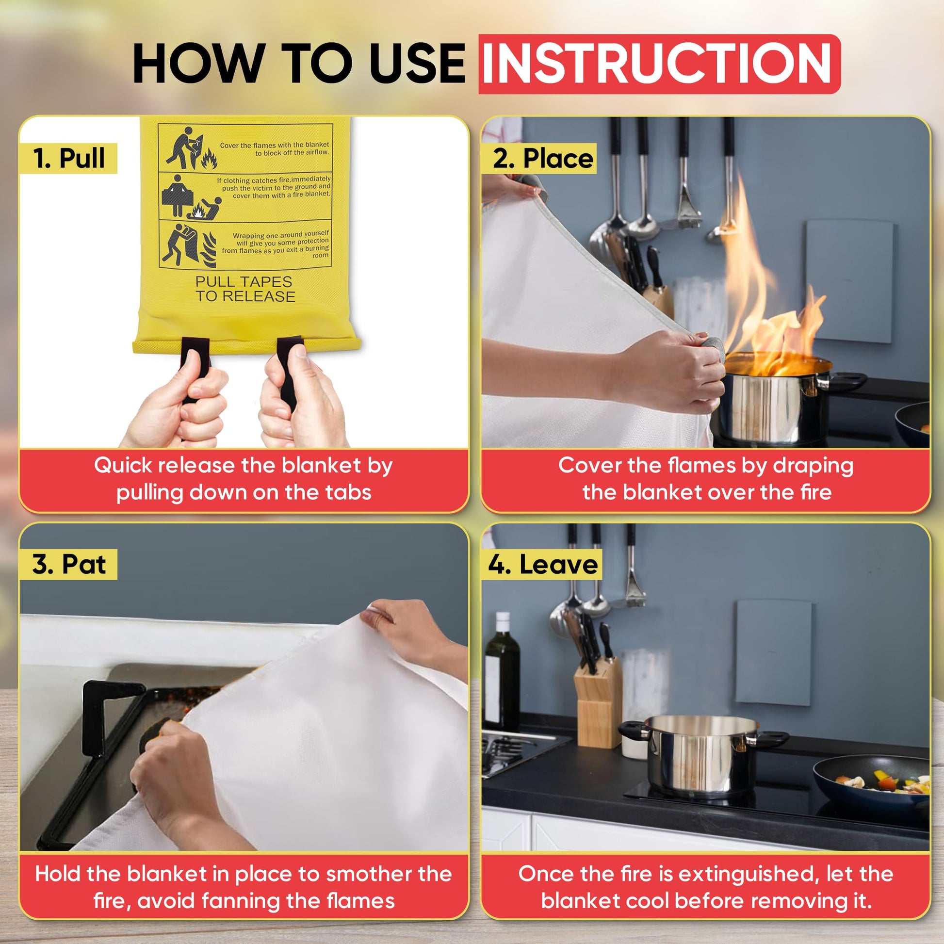 - 🔥 EASY TO USE—No training is required, the Fire Blanket can be used easily by anyone in the household, making it an essential component in any household.