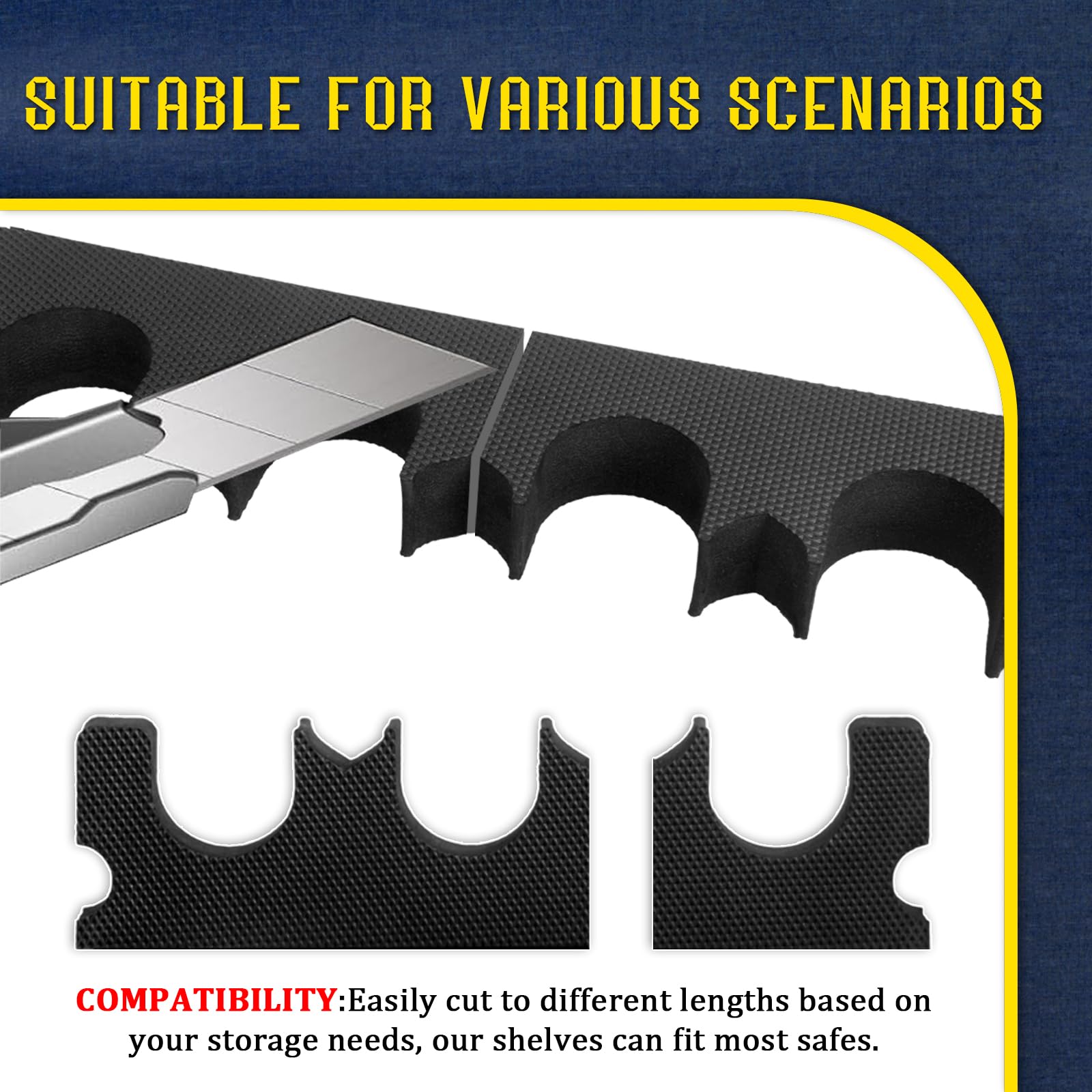 - 【Premium EVA Foam Gun Rest】Our gun holder for safe is made from high-density and durable EVA foam for excellent support without damaging your firearms. It's water-resistant, making it perfect for both indoor and outdoor use. The length of the foam gun rest can be easily adjusted with a knife to meet your specific needs.