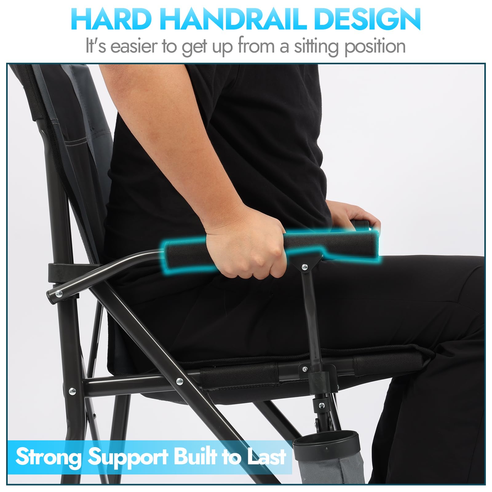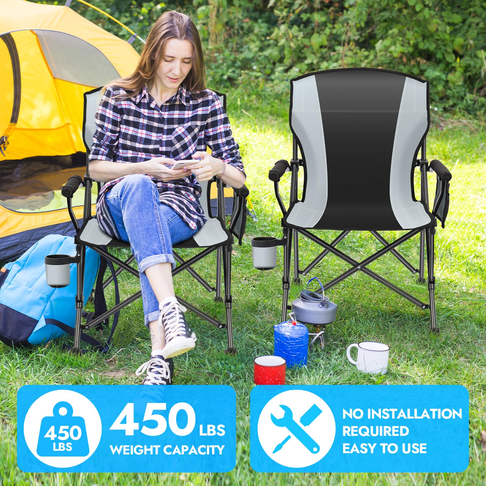 2 Pack Oversized Folding Camping Chair for Adults, Supports 450 LBS Camping Chairs, Heavy Duty Camping Chair with Side Pockets, Foldable Outdoor Chair for Camping, Beach, Fishing, Hiking, Black-Gray