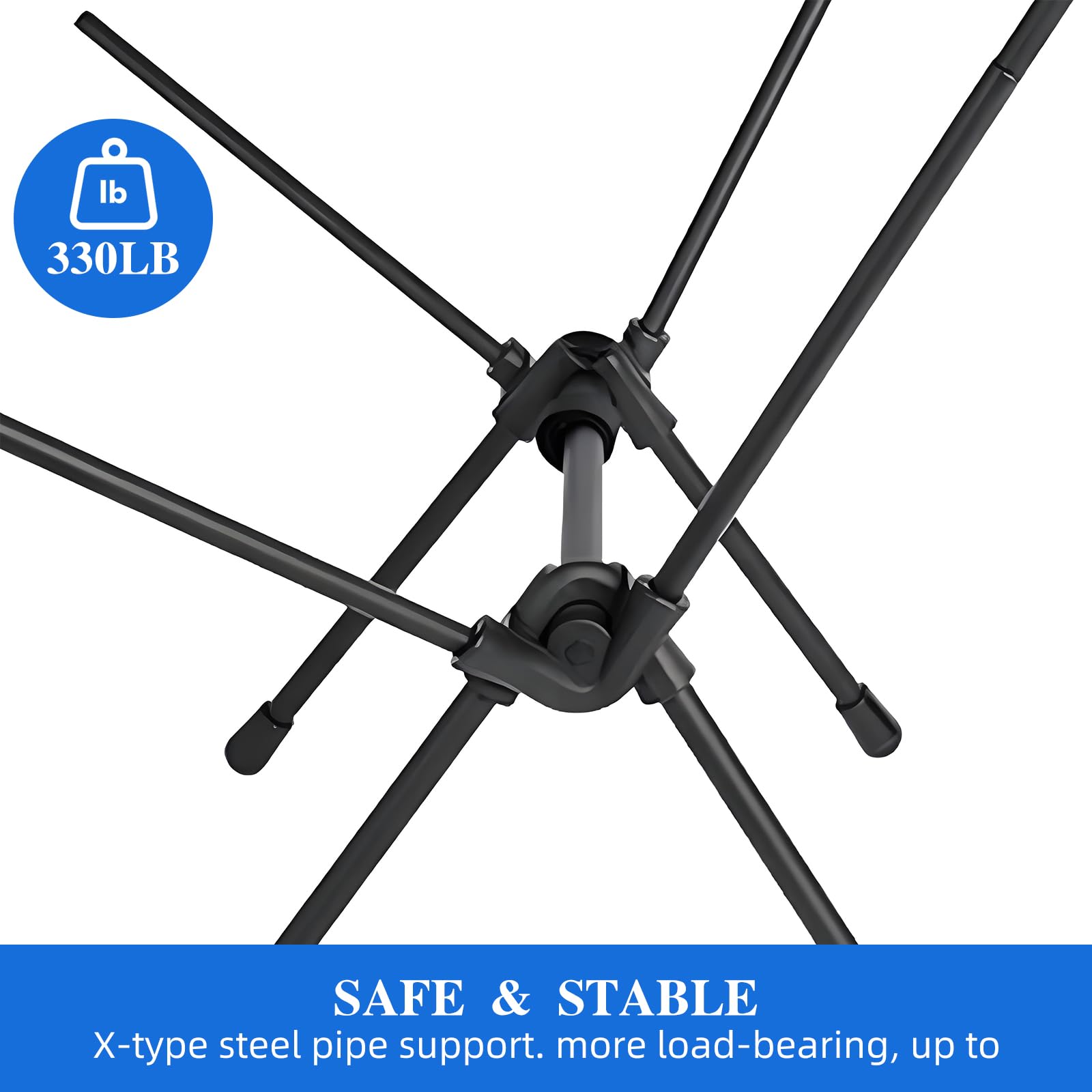 - Professional Stability Camping Chair:Triangle is the most stable in mechanics. This innovative triangular frame base makes the chair quite stable from either front to back or side to side. It won't tip over easily even if you twist around, giving you adequate security. Solid construction, strong plastic joints and thickened leg poles allow the chair to hold up to 330 lbs.