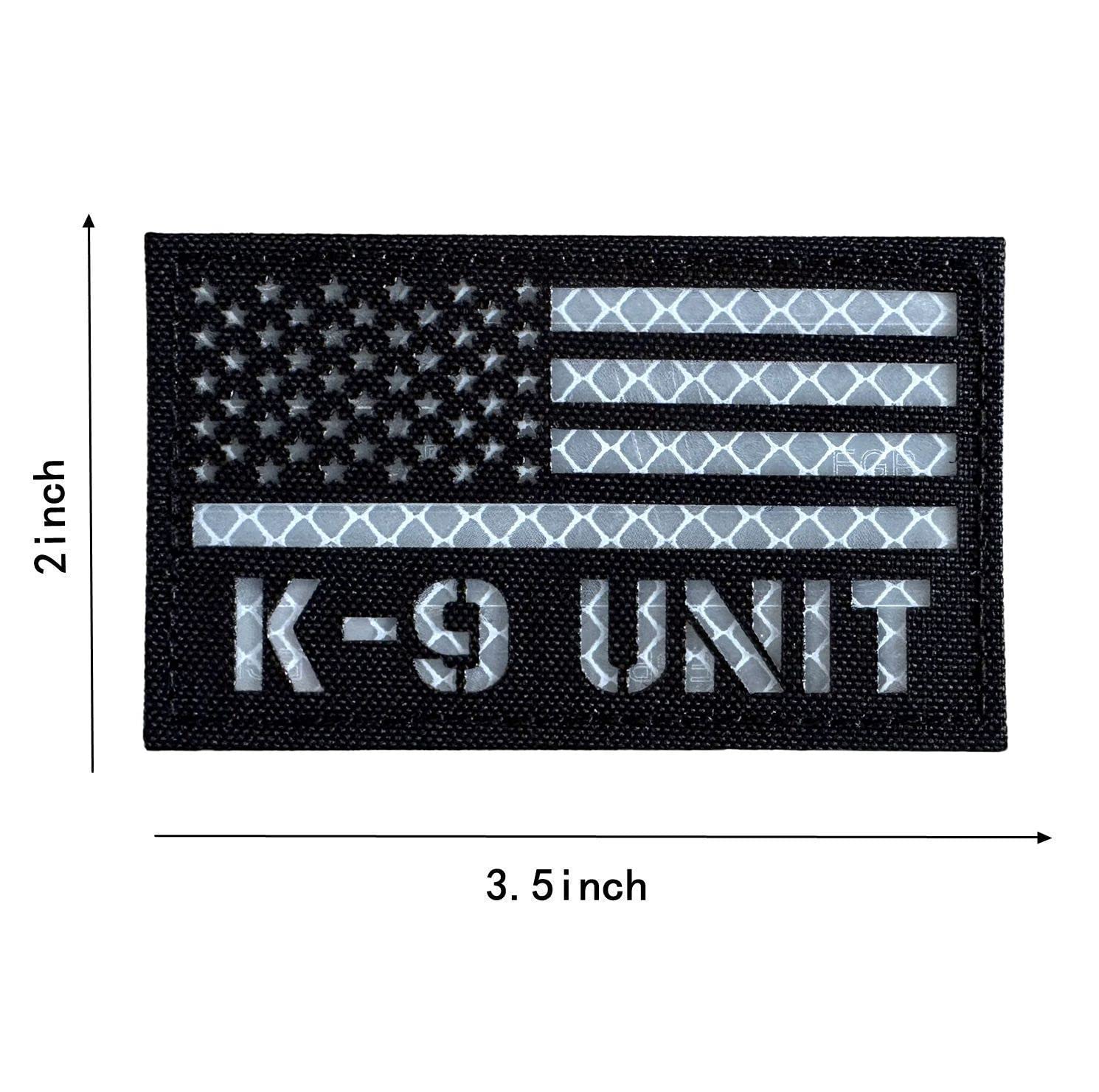 2 Pack Reflective K9 Unit Patch US Flag with Hook Back for Service Harness Tactical Vest Collar Hook-Fastener Backing (Black-White)