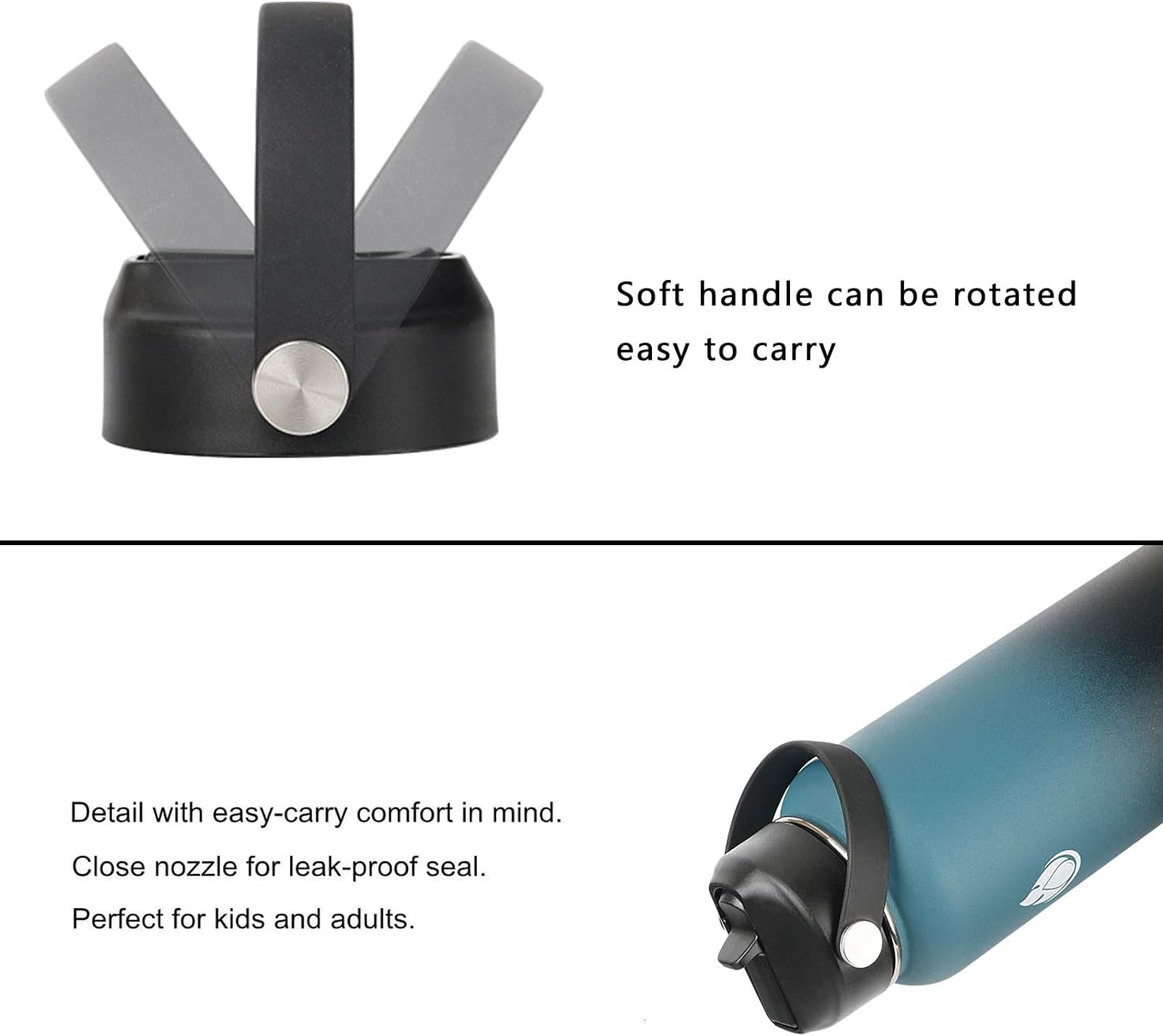 - TOP DESIGN:The wide mouth flexible straw lid is designed with soft and super comfortable flexible handle strap,easy to grasp and carry your favorite hydroflask wide mouth KOPOTU water bottle wherever you go. Flip straw top lid allow one-handed drinking for adult and kids,a high-flow rate to meet your daily hydration on-the-go.