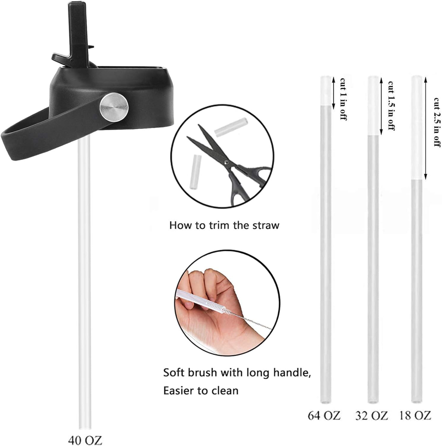 - GREAT VALUE - Comes with 4 separate straws and 2 straw brush cleaner.The straw lid can be used on hydroflask wide mouth 12-64 oz, Straws length fit 40 oz perfectly, trim straws as guide to fit your other sizes hydroflask wide mouth KOPOTU water bottle.
