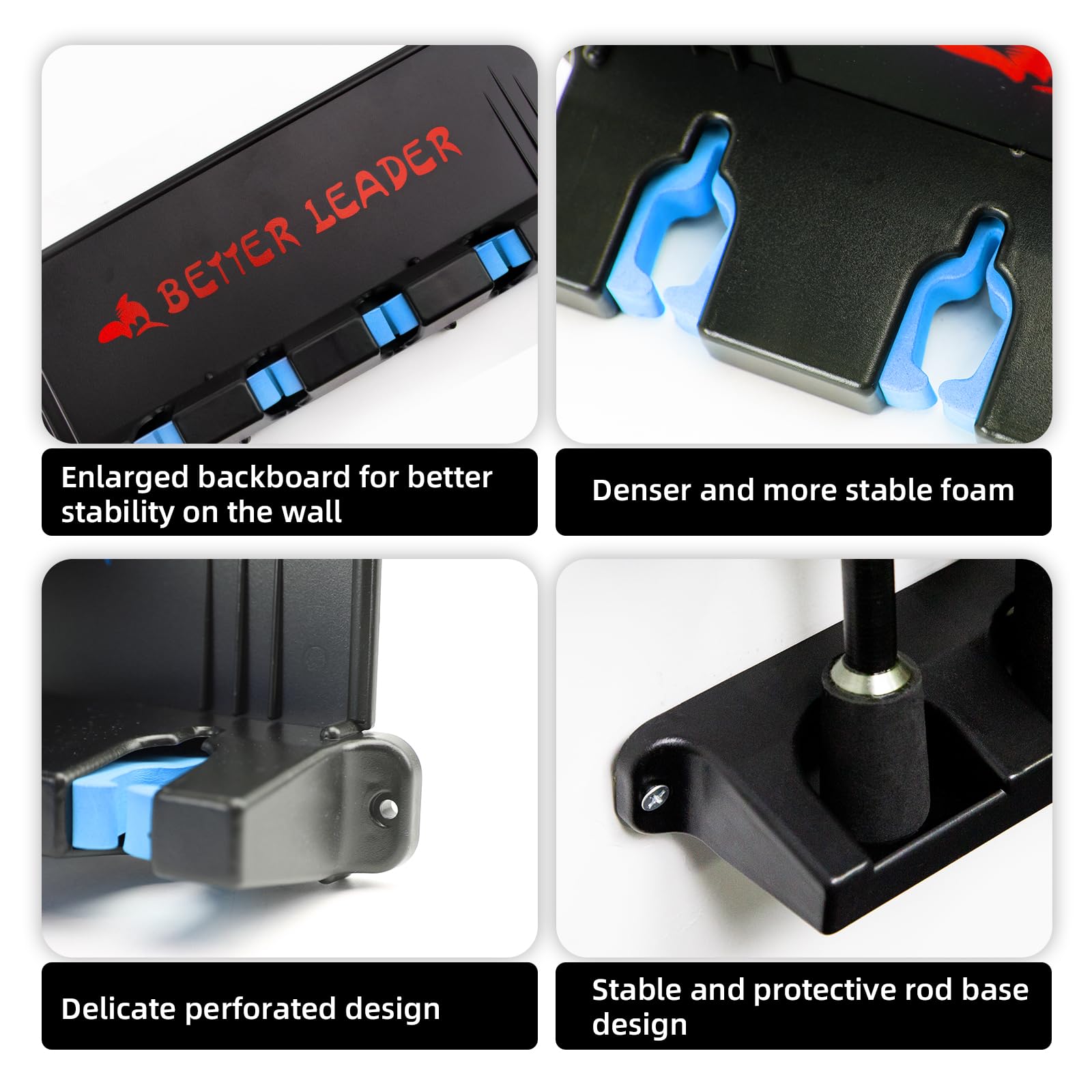 - Durable Construction: BETTER LEADER Fishing Rod Holders made from high-quality materials to ensure long-lasting use. With secure crip, fishing rod holders for garage Holds fishing rods firmly in place, preventing them from slipping or falling.