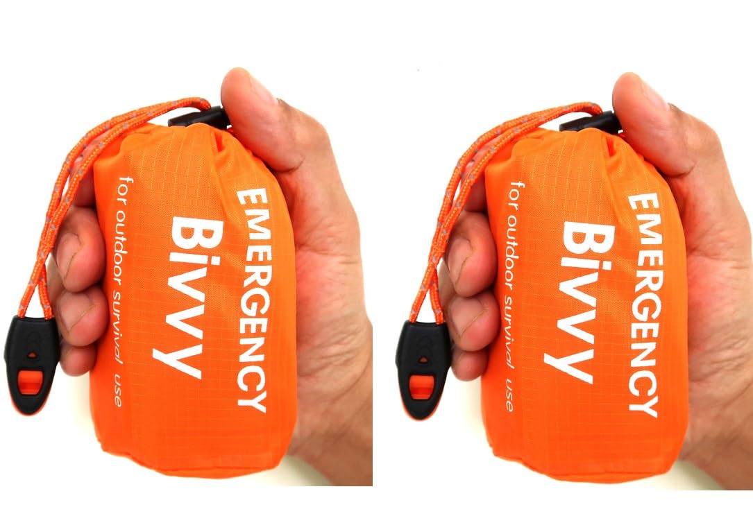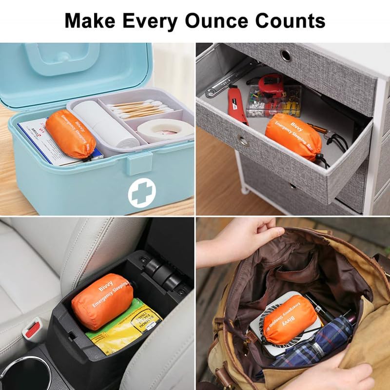 - ✅ FULL BODY PROTECTION SURVIVAL KITS : This thermal Bivvy sleeping bag size is 84 inches x 36 inches = 210 cm x 90 cm/ weight 3.9 oz. in weight, Long enough to cover your full body protection stay warm and alive in extreme weather condition.This emergency sleeping bag easy to carry store in backpacks, first aid kits, camping gear, car drawers or even in your pocket. All individually folded and packaged, well sealed, with excellent water wind proofing and light blocking effects.