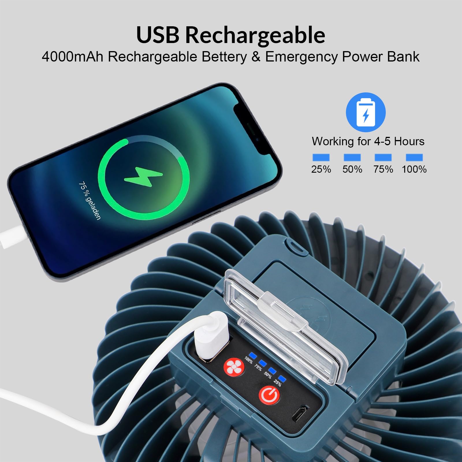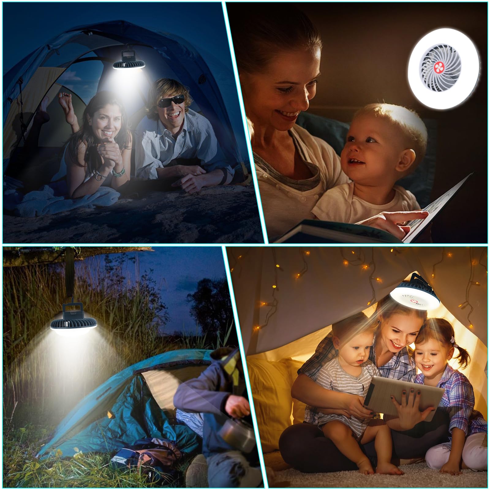 2 Packs Portable Camping Fan with LED Lantern,USB Rechargeable for Phone Waterproof Tent Fan with Hanging Hook Magnet Survival Kits for Indoor Outdoor Hiking Car Office Desk Outdoor Emergency Power