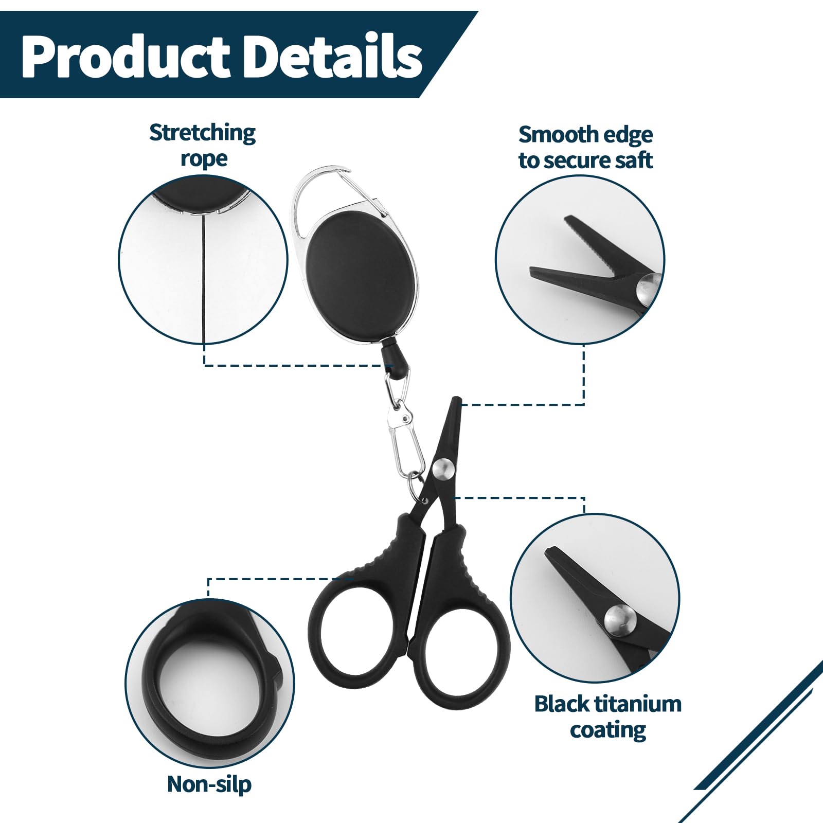 - Convenient & Easy to Use: The fishing scissors are designed with an ergonomic handle, ensuring a secure grip even when wearing gloves. The retractable buckle feature allows for easy attachment and quick access, making them perfect for on-the-go use
