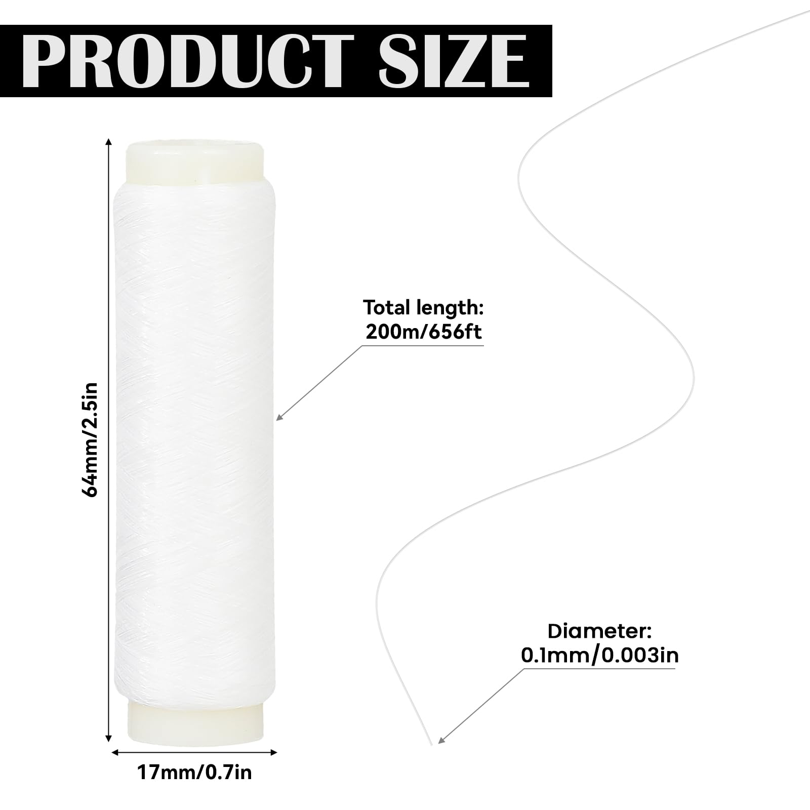 - Package List: Each package contains 2 rolls of 200m/656ft transparent fishing line with a line diameter of 0.1mm, which is enough to meet your needs for long-distance fishing trips.