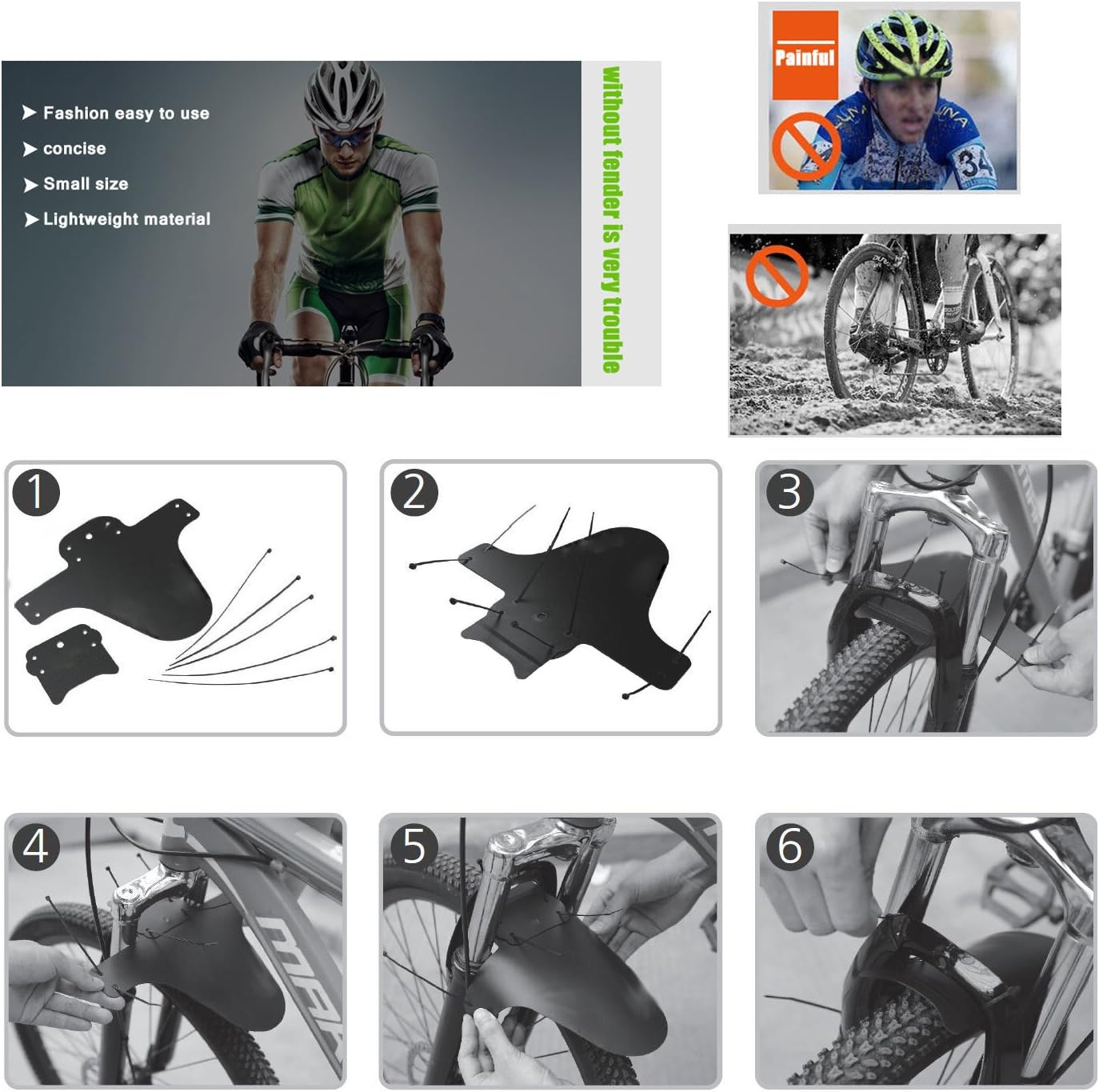 - Easy to install: This mtb fender come with 10 heavy duty zip ties which are used to strapping to the fork, bridge and stanchions. Four-point fixed to avoid sliding. Please follow the installation steps in the fourth picture
