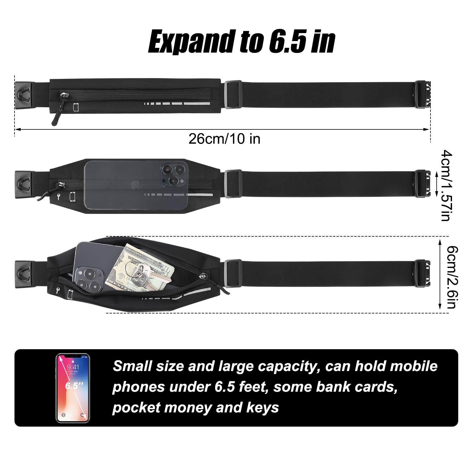 - 【FITS All CELL PHONE】- Slim, comfortable workout fanny pack keeps a low profile on your waist, while the expandable pockets allow you to carry any sized phone, key, money etc.Additionally, we've added eye-catching reflective strip logos for enhanced safety during nighttime runs.