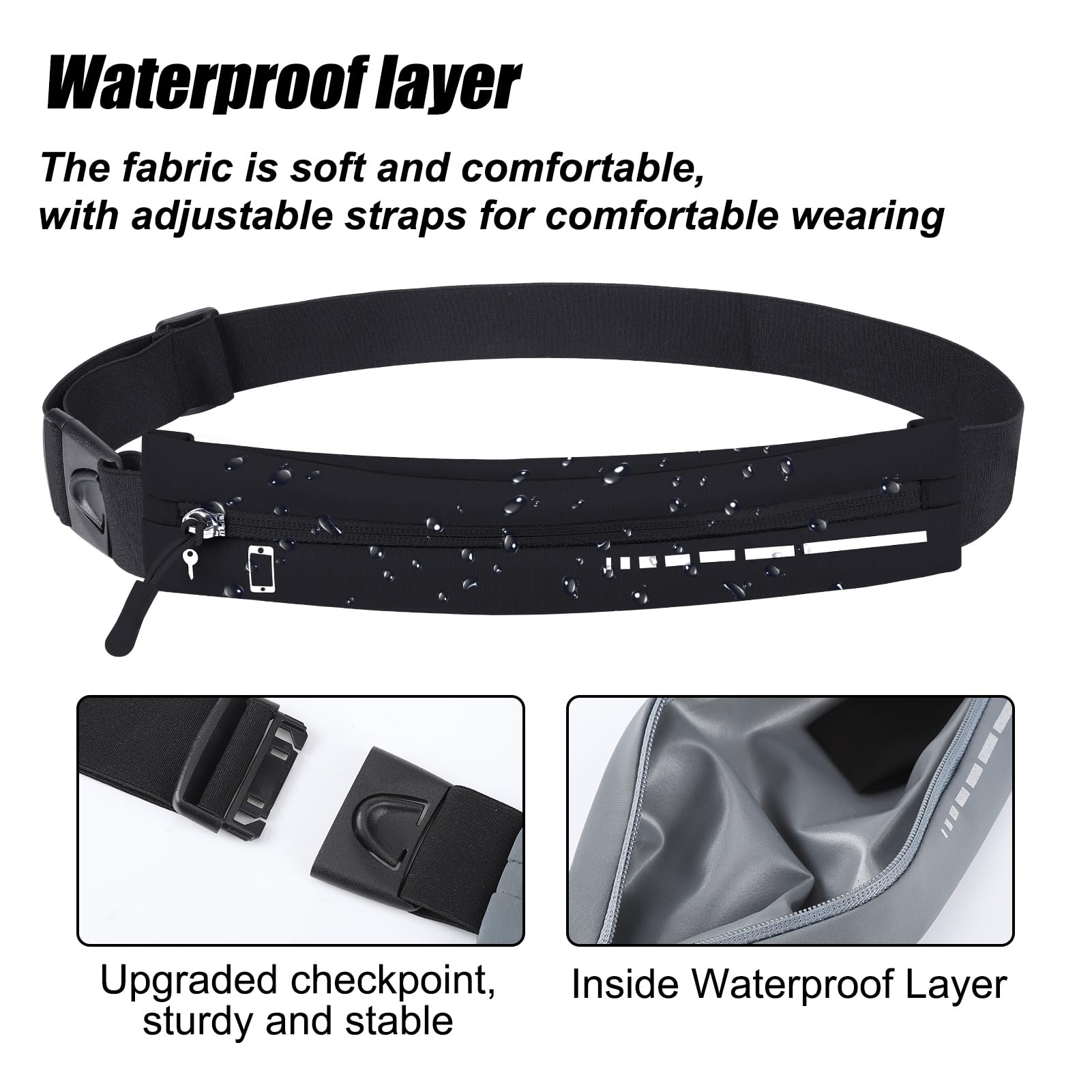 - 【QUALITY MATERIAL】- The running belt for phone is made from two layers: the inner layer is reinforced TPU to keep items dry; and the outer layer is waterproof and sturdy material. this belt ensures a breathable and skin-friendly experience during your runs. Lightweight and snug, it guarantees comfort throughout.