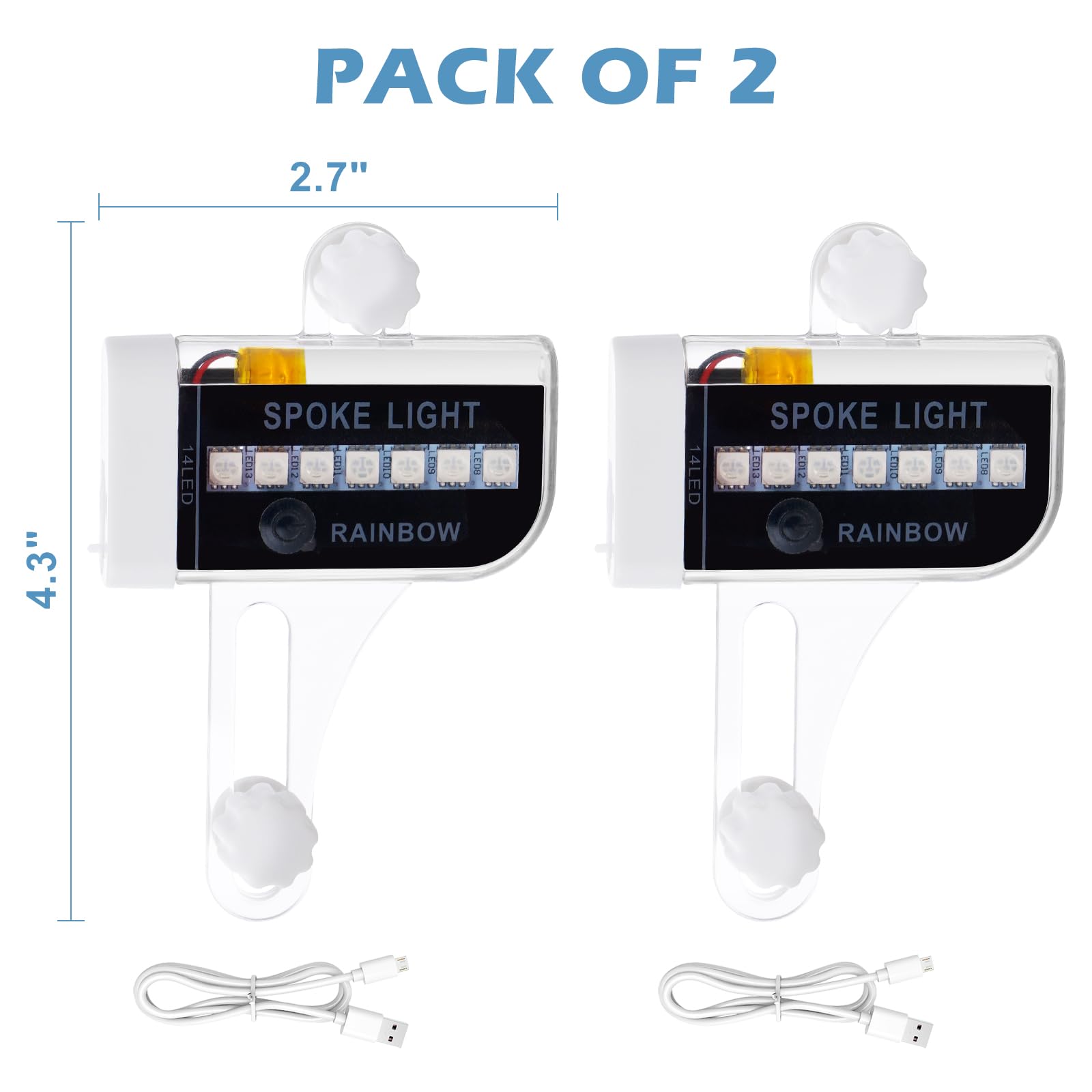 - [HIGH BRIGHTNESS LED] With 14 bright LED lights, our rechargeable bicycle spoke light ensures high brightness and visibility from all angles during night rides. Stand out in the darkness and become the center of attention with this bicycle tire light.
