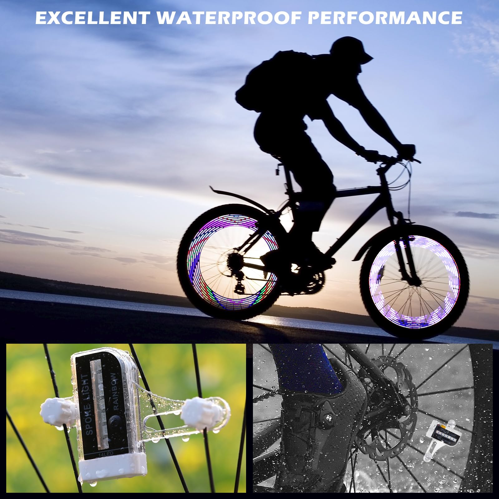 - [30 PATTERNS BIKE SPOKE LIGHTS] Enjoy 30 different patterns that change every 4 seconds. The patterns become complete when riding at a speed of 13 miles/hour. Thanks to the double-side lamp design, the light can be seen from all directions, enhancing safety during night rides.