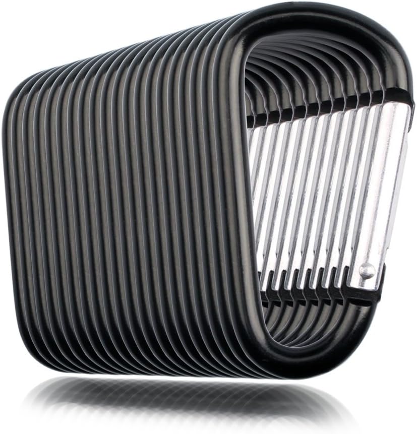 20 Pack 2.5" D Shape Aluminum Large Carabiner Clip Lock Hooks Spring Snap Keychain Spring-loaded Gate Carabiners (Black)