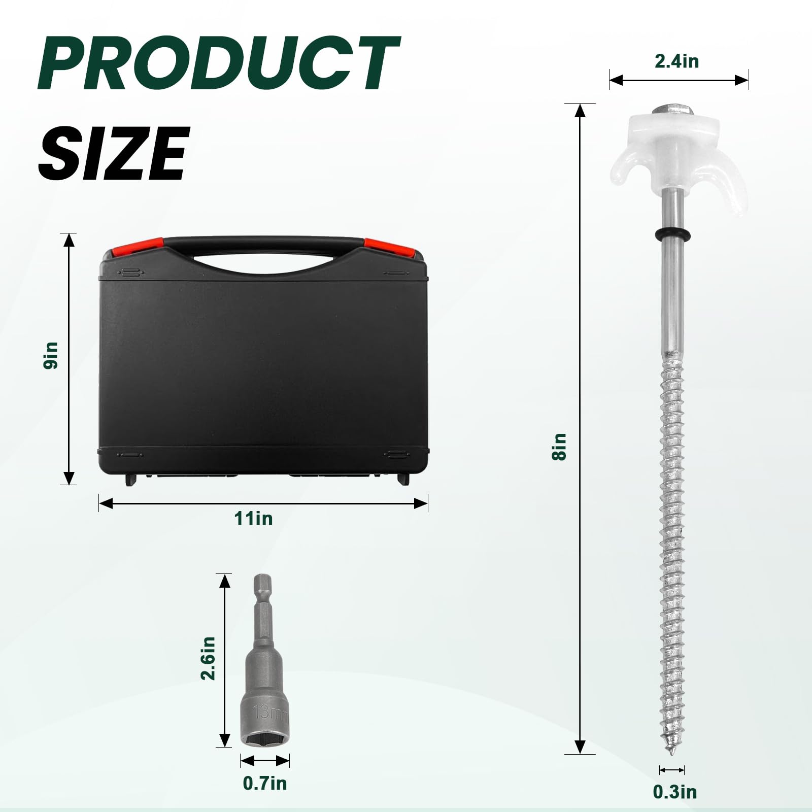 20 Pack 8" Screw in Tent Stakes Heavy Duty- Ground Anchors Screw- Tent Pegs Camping Stakes- Hex Pegs Drillable Tent Stakes and Hexagon Head Drive and Storage Box (White)