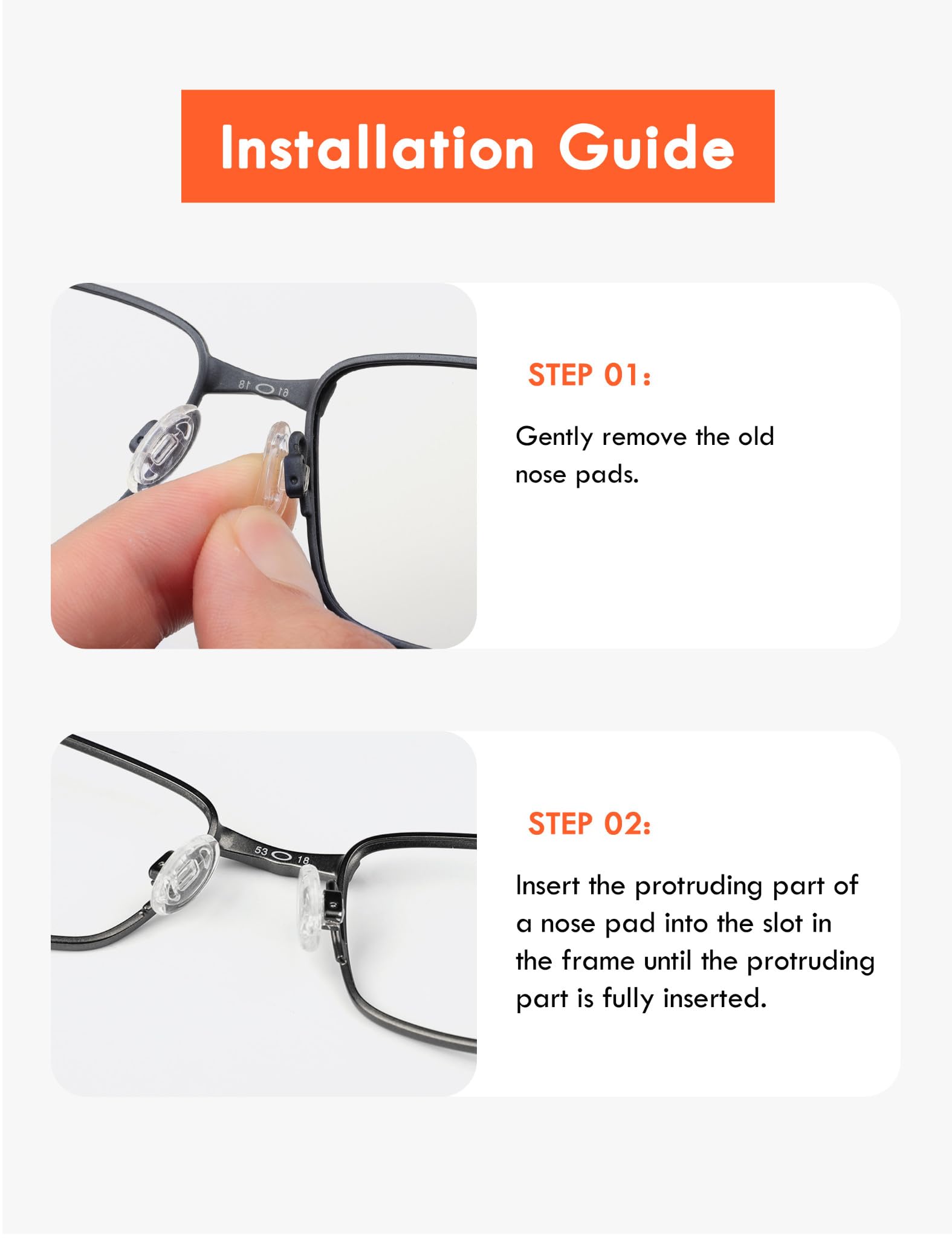 - Package Includes: 20 pairs of push-in nose pads as shown in the images. Purchase does not include frames and lenses.