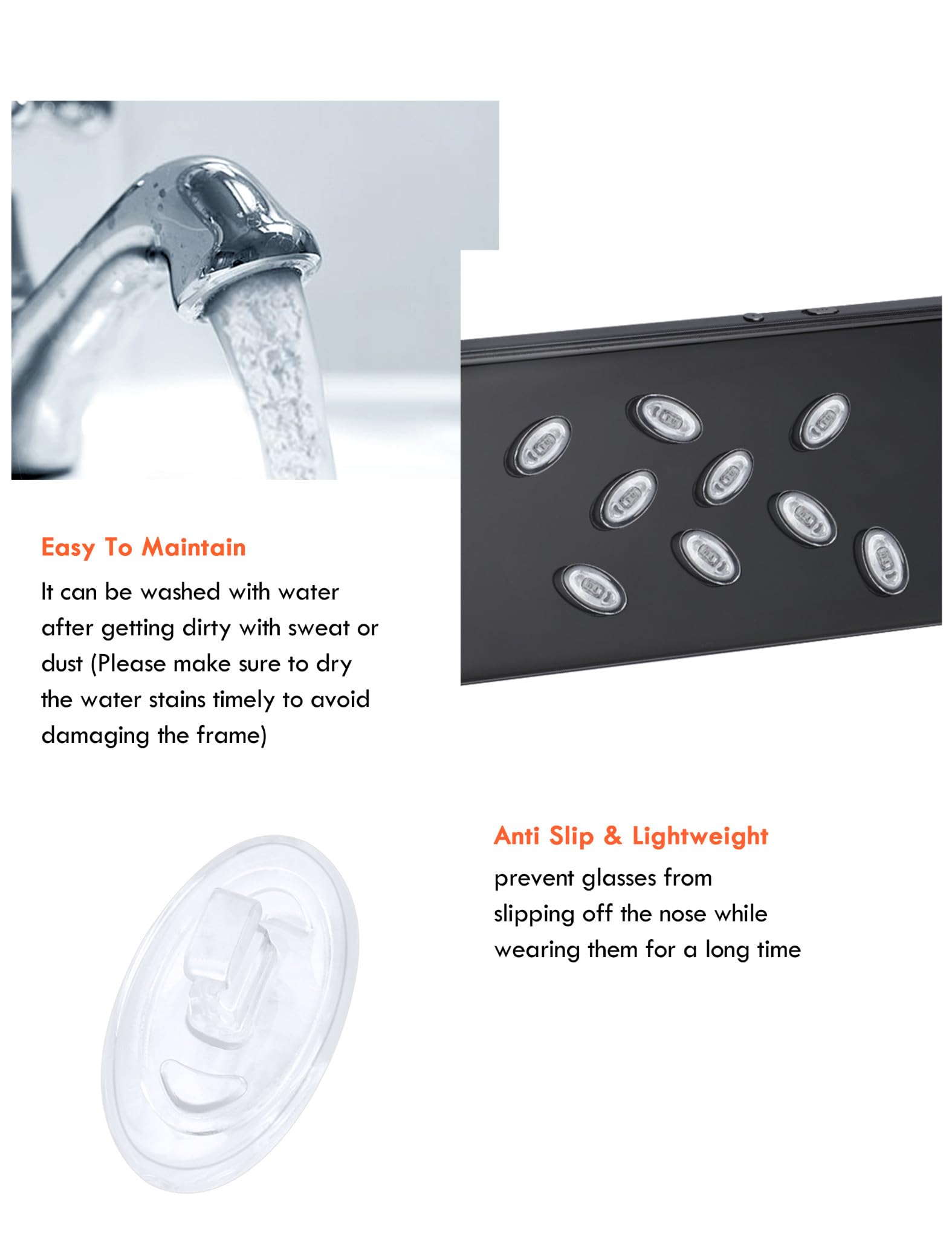 2.Anti-slip Function - Designed with soft and smooth surface, comfortable to wear and fits your nose perfectly. You don't need to worry about your glasses slipping down all the time anymore.