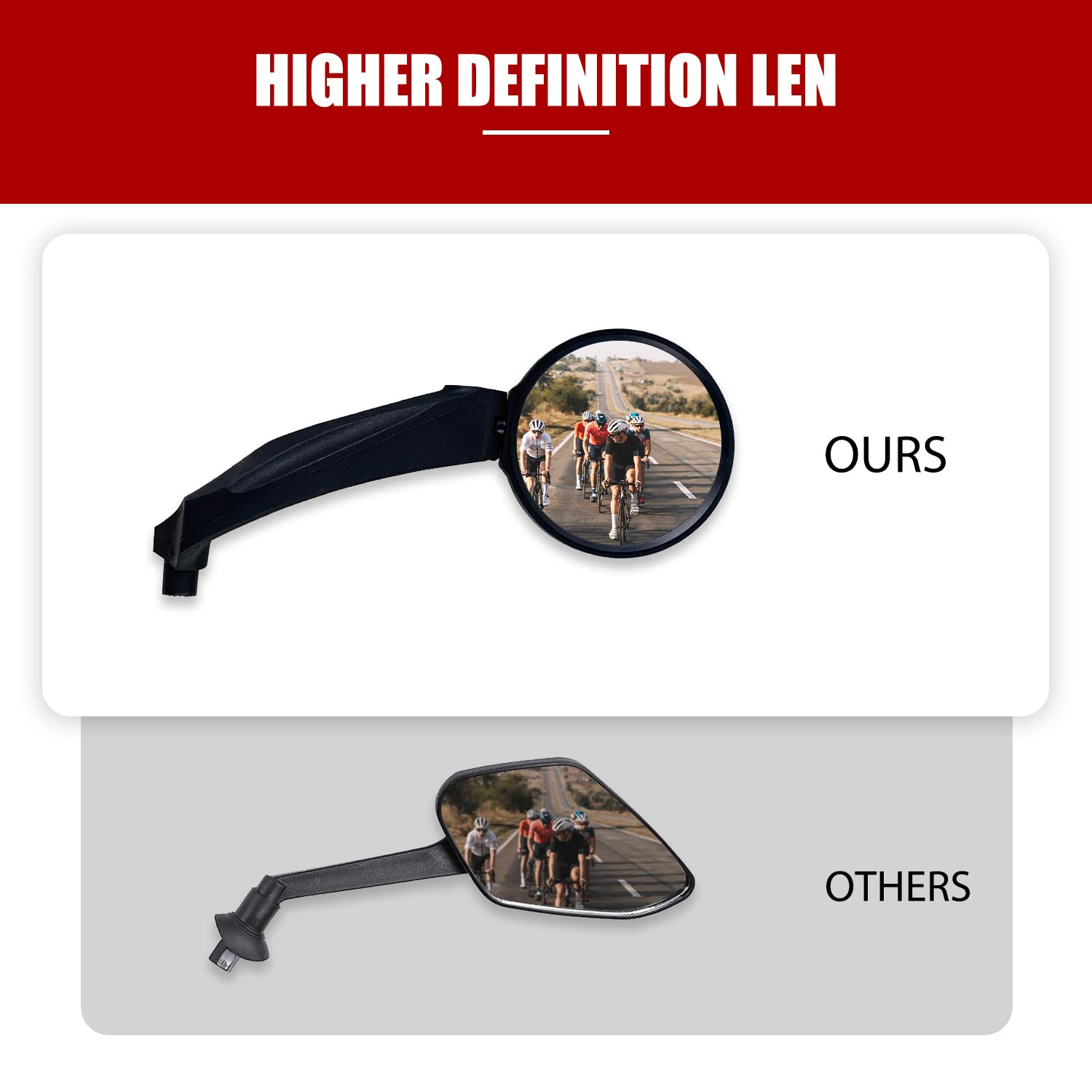 - Crystal-Clear, Wide-Angle Viewing: Featuring an HD acrylic convex lens, this bike mirror offers an expanded field of view, allowing you to easily monitor traffic and road conditions. Ride with confidence and comfort, knowing you have a clear, magnified perspective of distant objects.